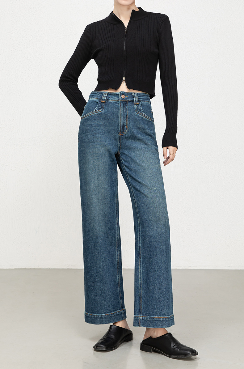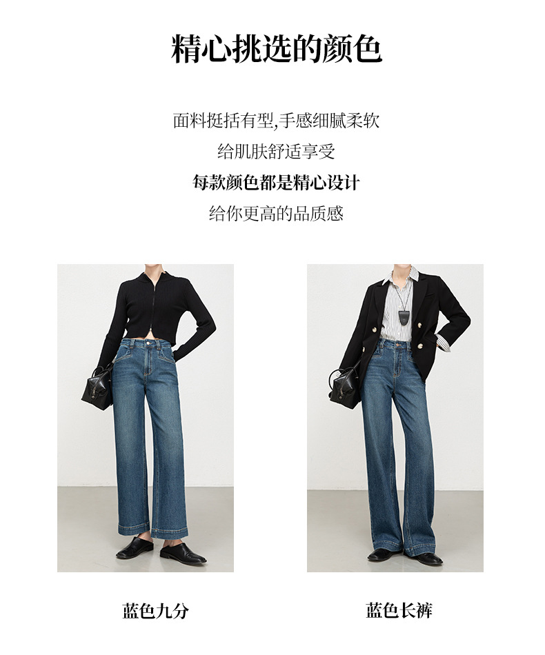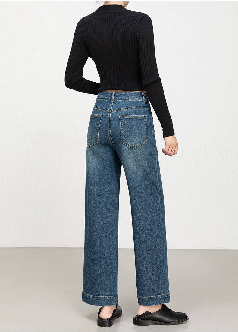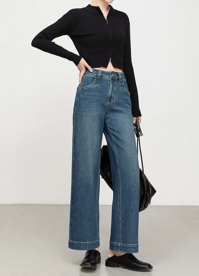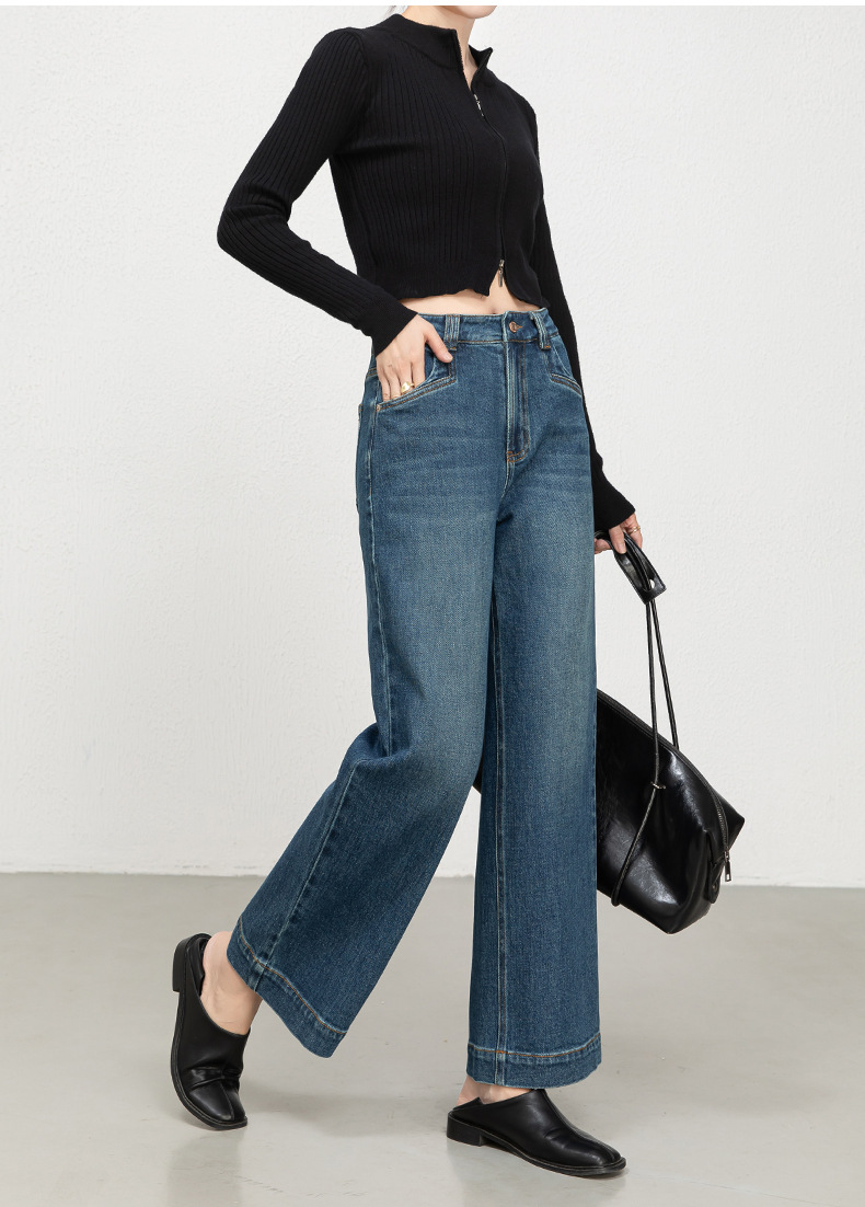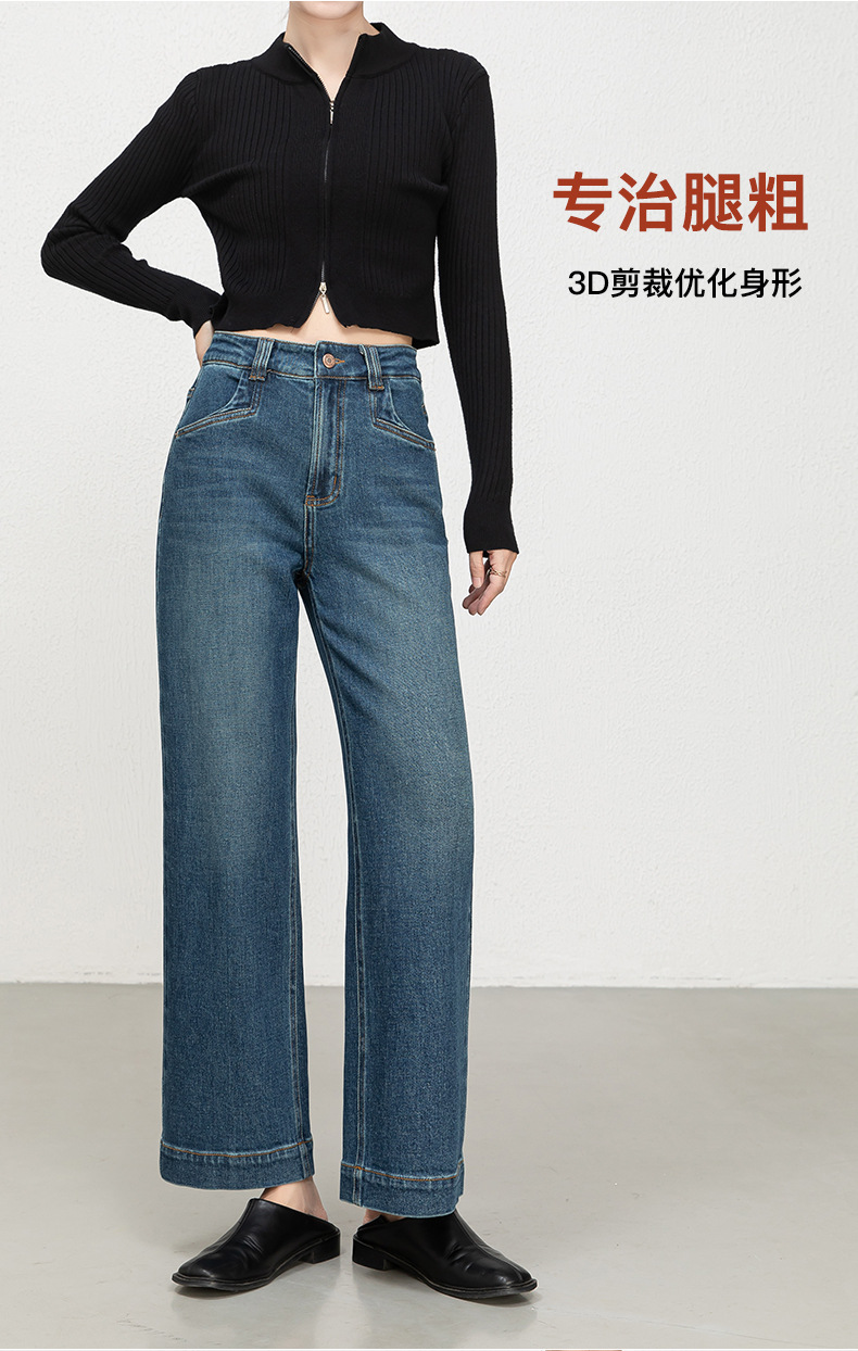 Hua Qianban's 2025 autumn new high-waisted straight-leg denim 9-inch pants, Korean style fashionable narrow wide-leg trousers, 8200