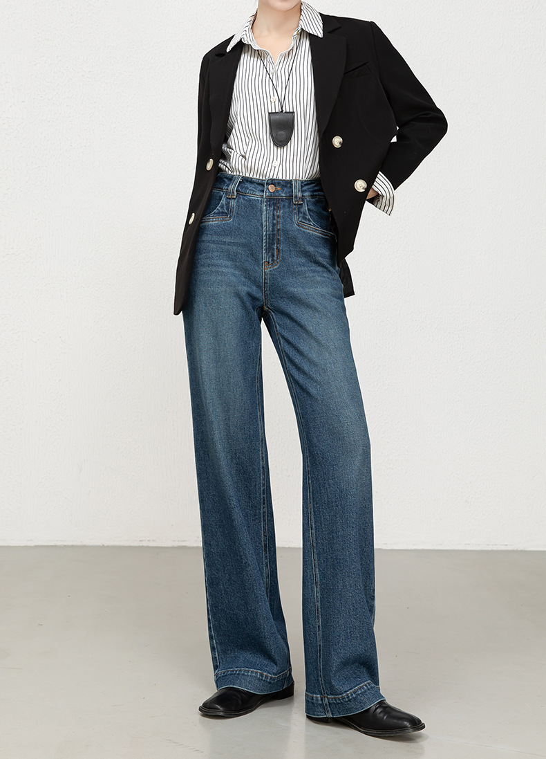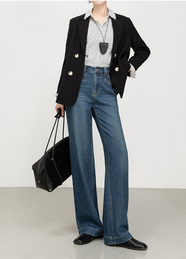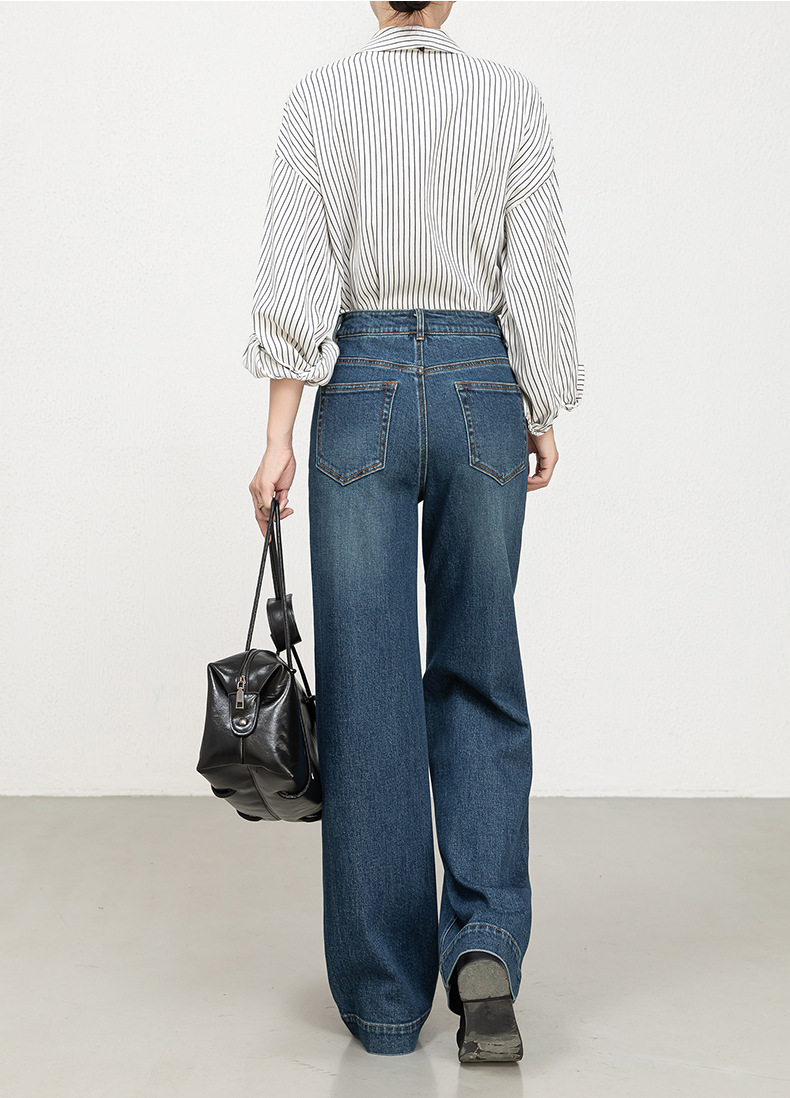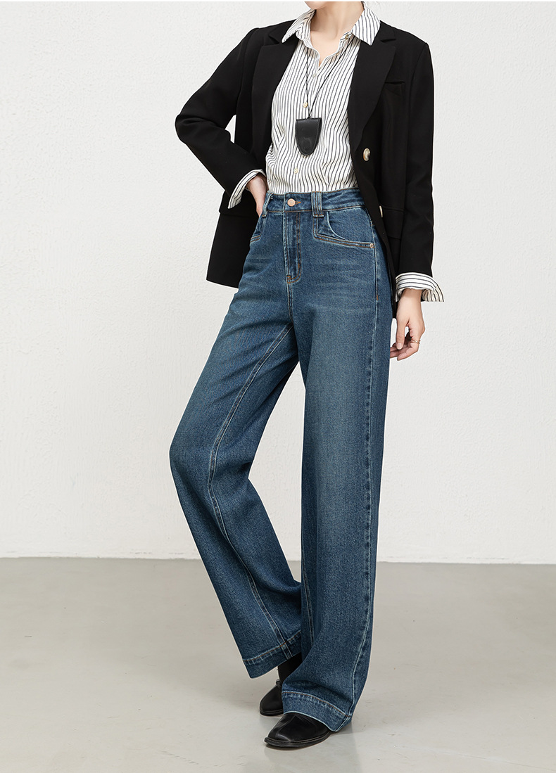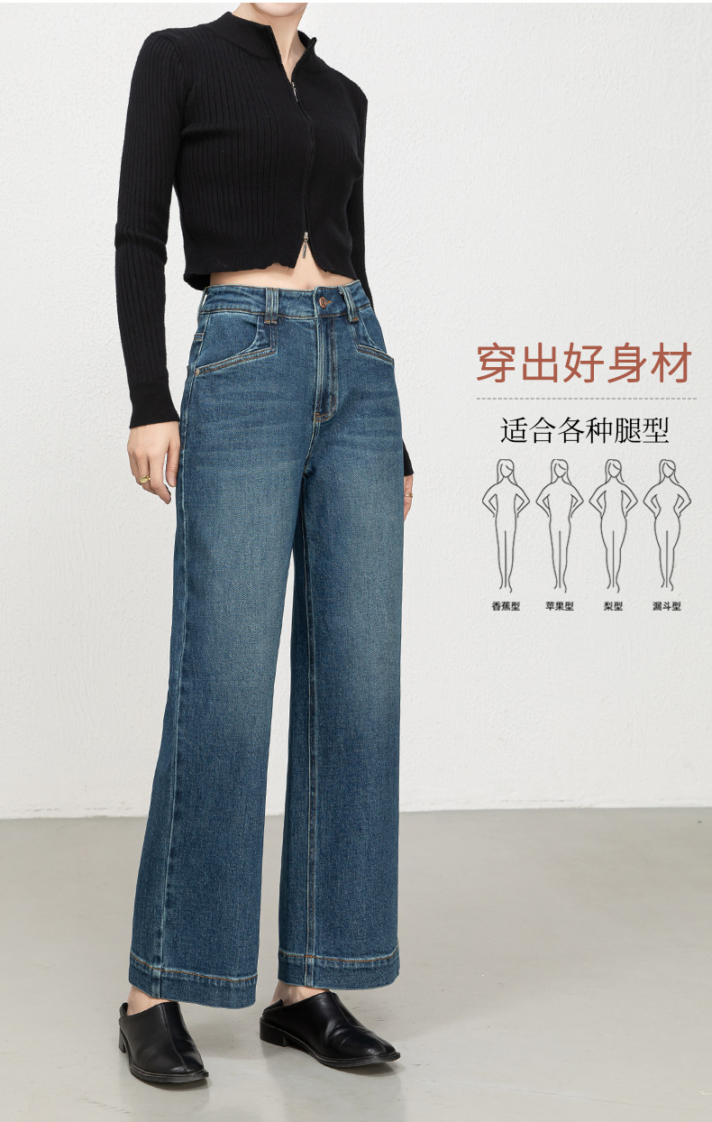 Hua Qianban's 2025 autumn new high-waisted straight-leg denim 9-inch pants, Korean style fashionable narrow wide-leg trousers, 8200