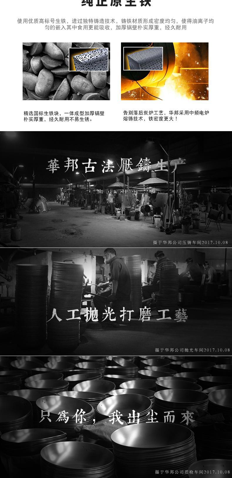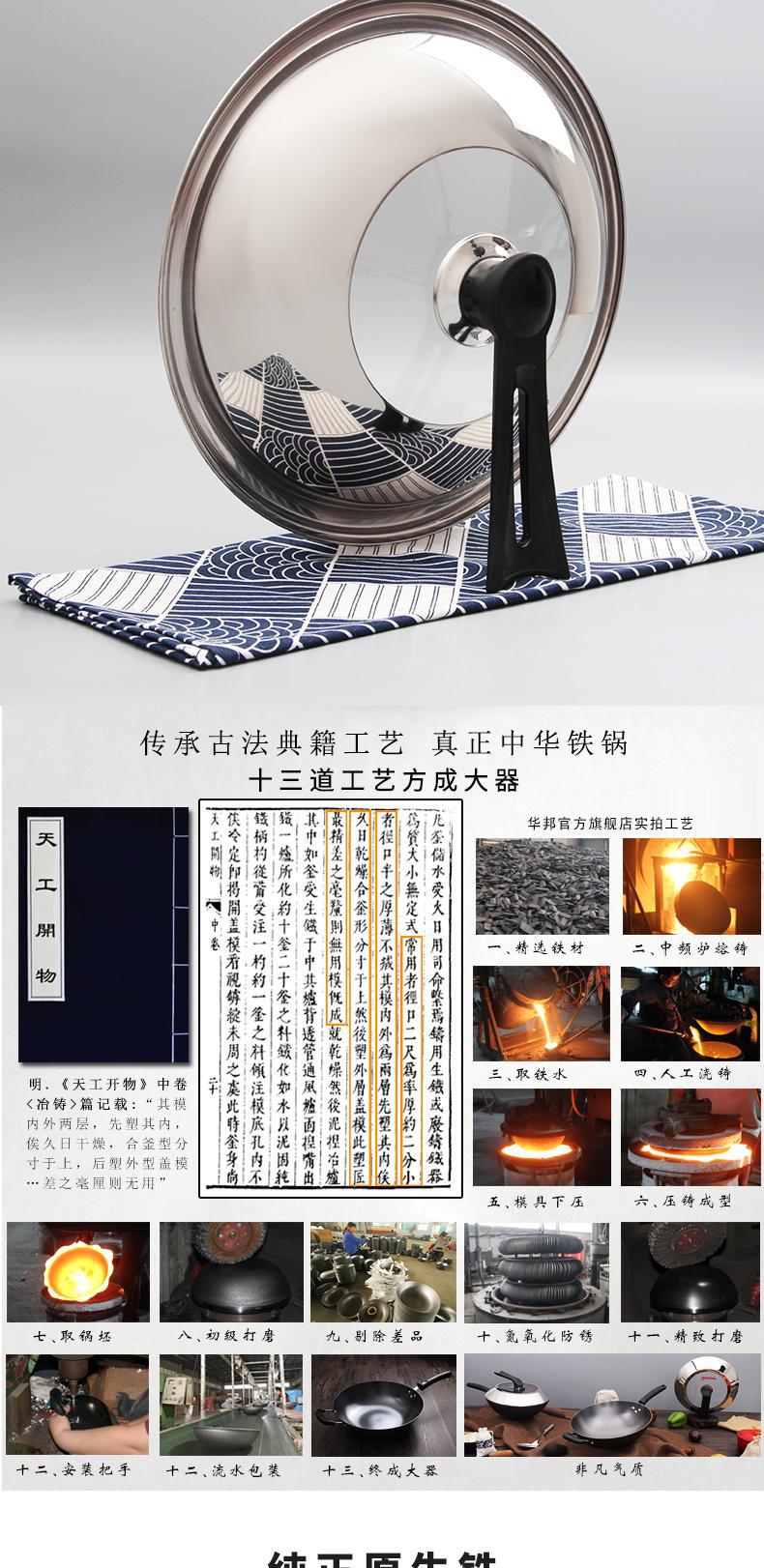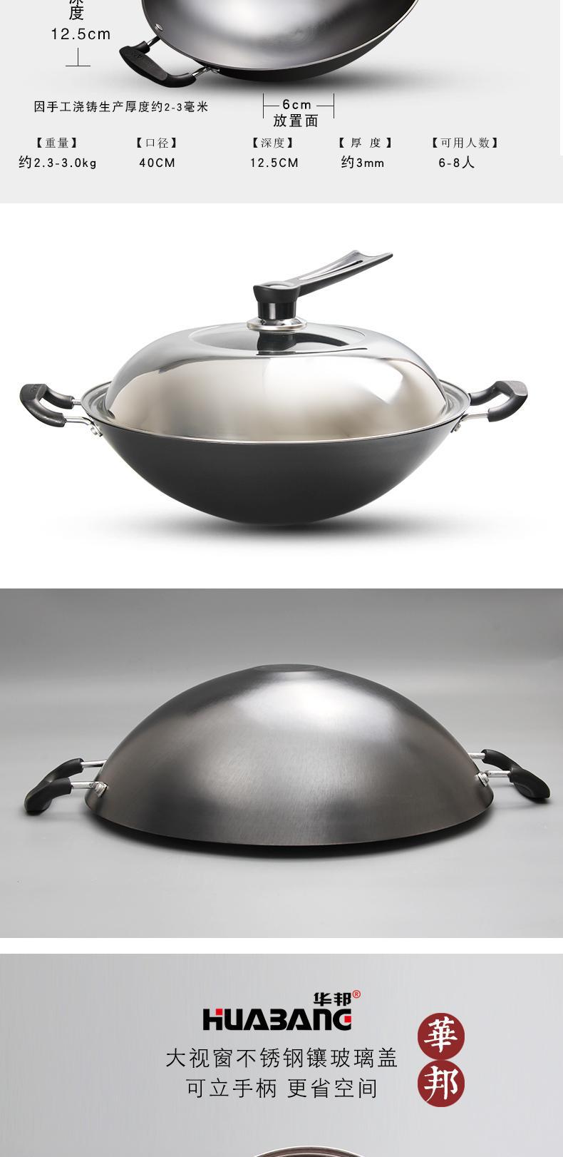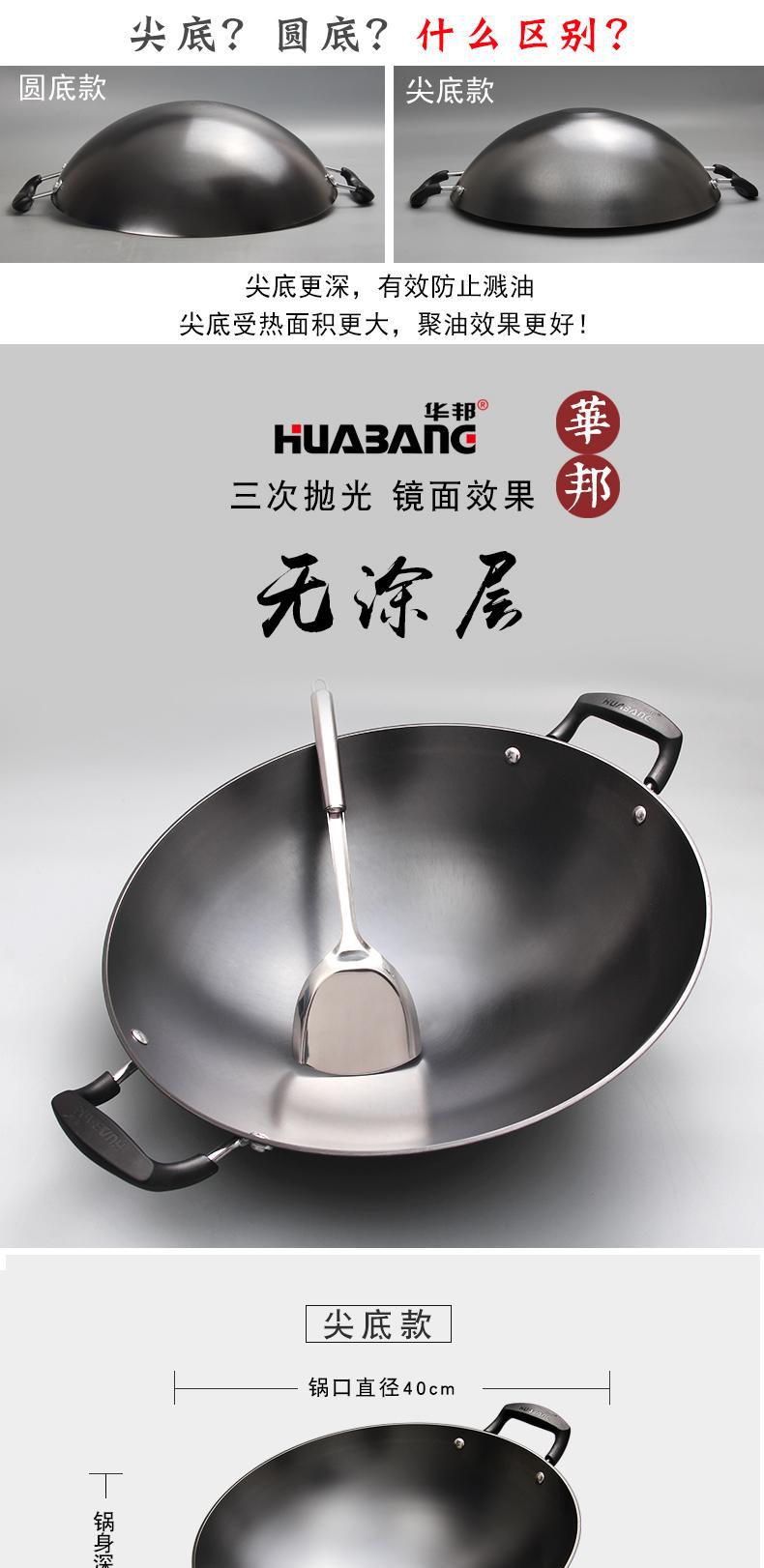 Huabang's new cast iron true stainless double-handled wok, uncoated household wok, old-fashioned flat-bottomed wok, round-bottom wok, universal
