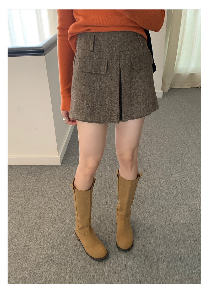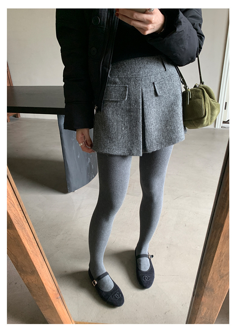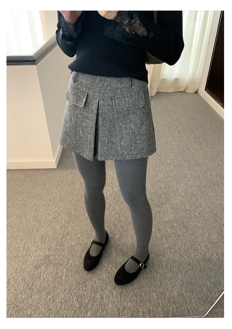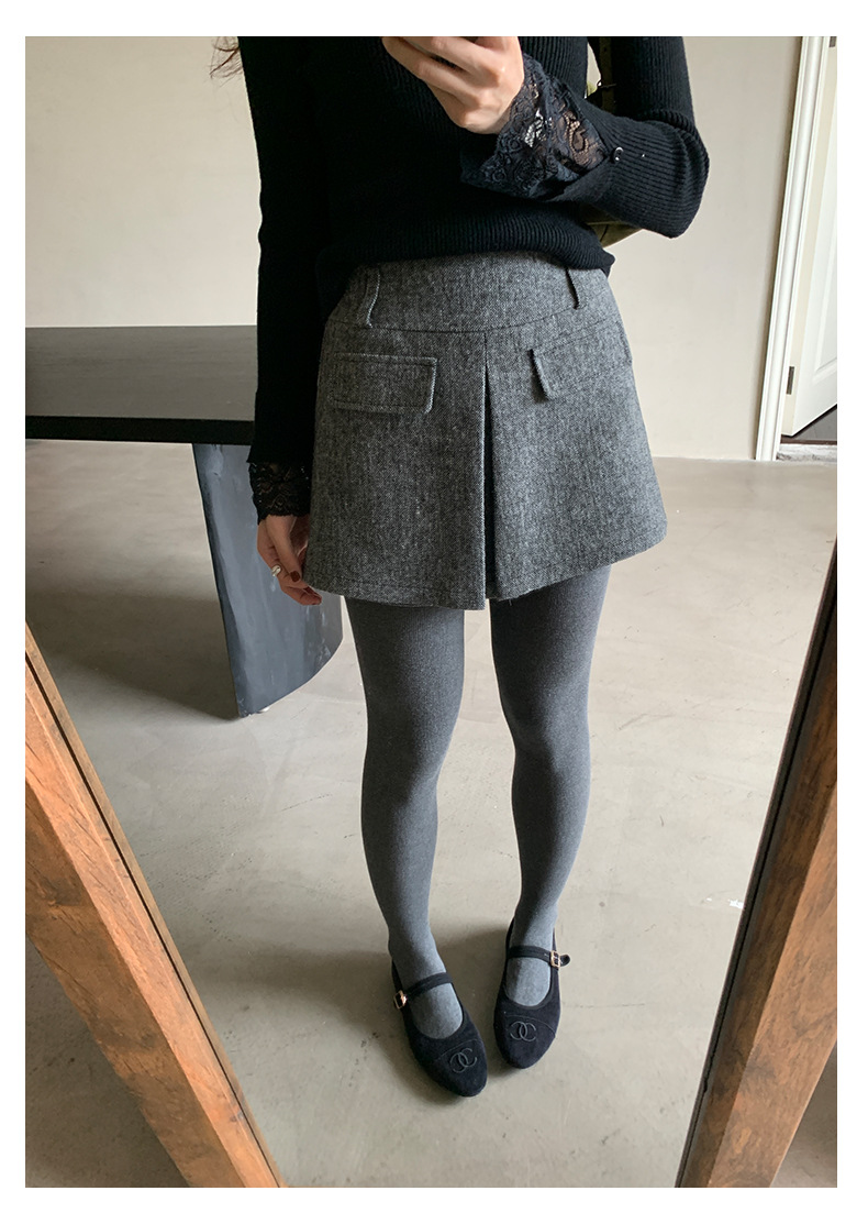 Huang Zheng's petite, high-quality, high-waisted skirt and pants for women in winter, Korean style, versatile and slimming, A-line body-hugging short skirt 541124