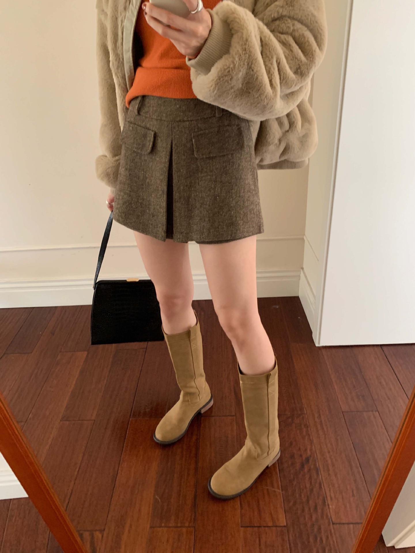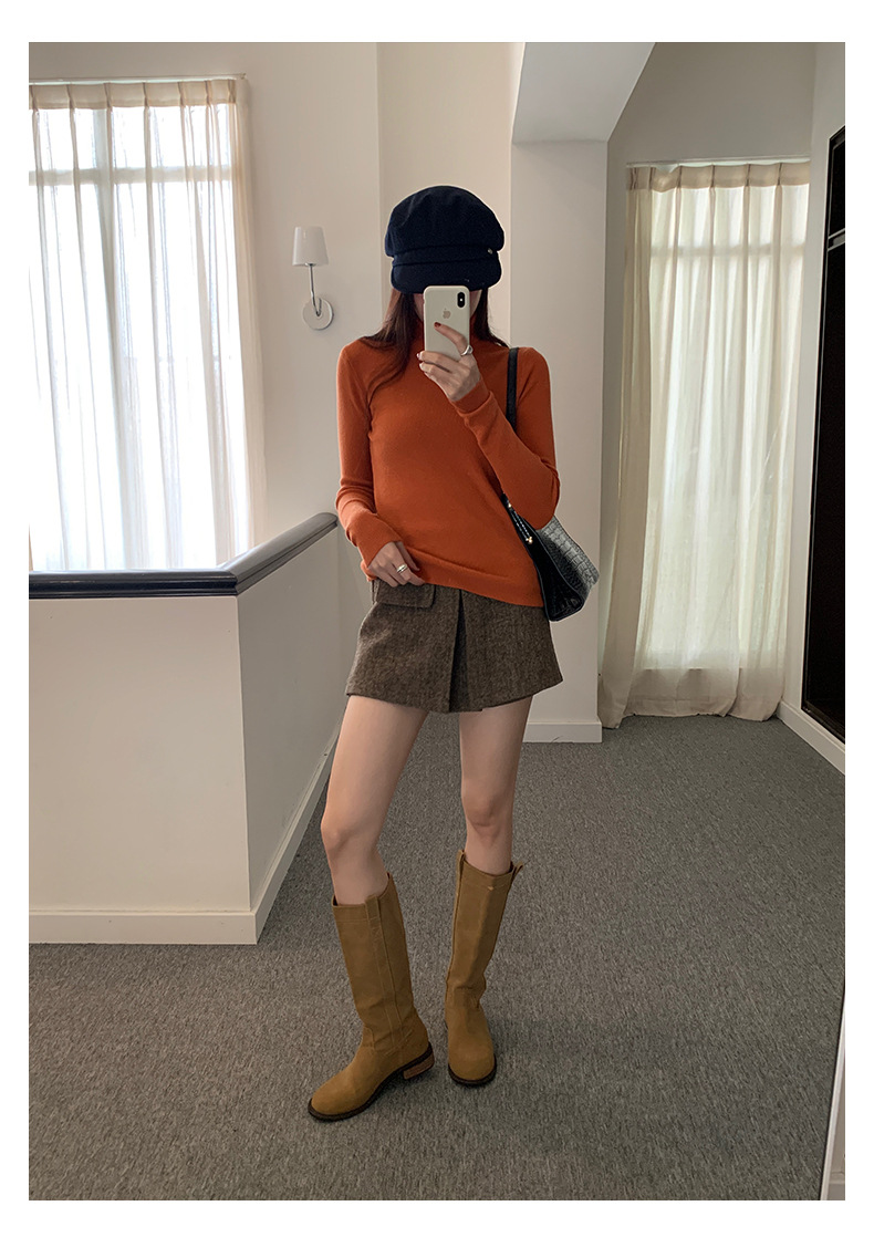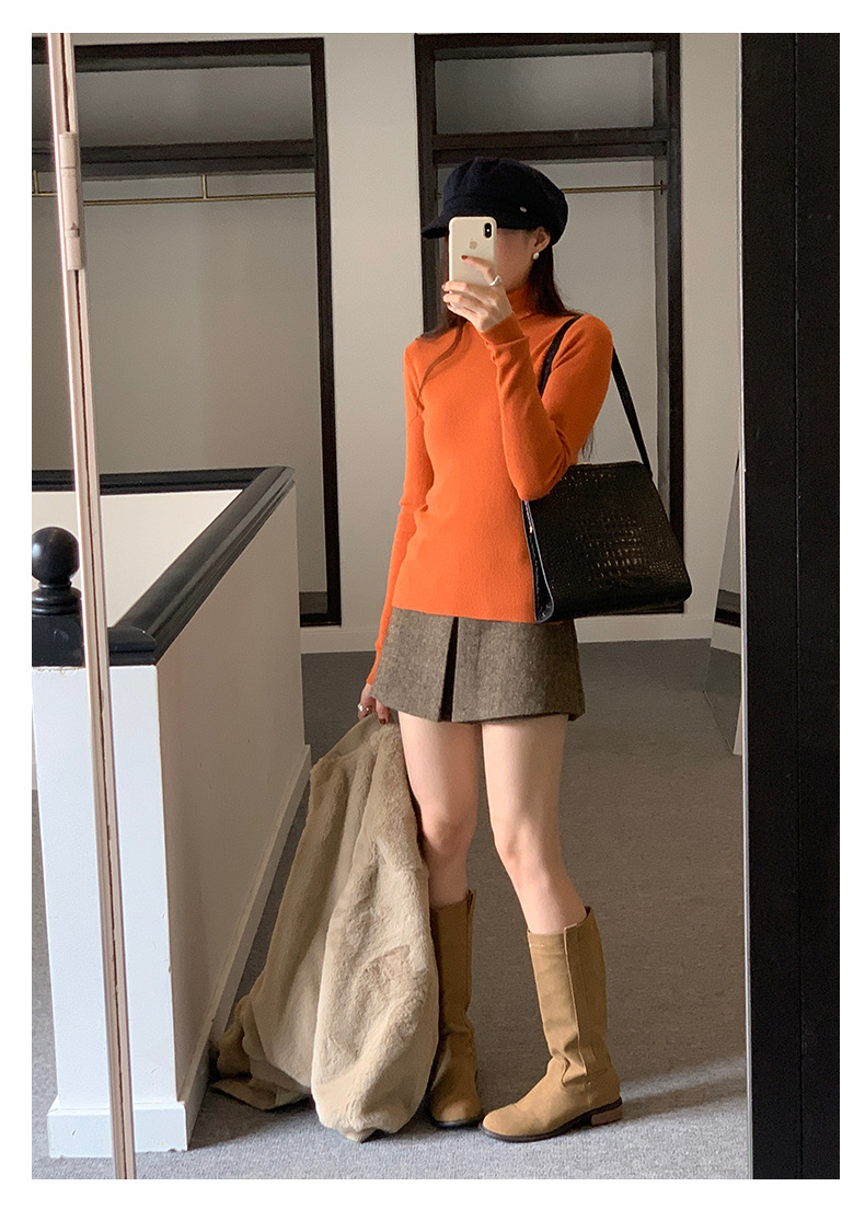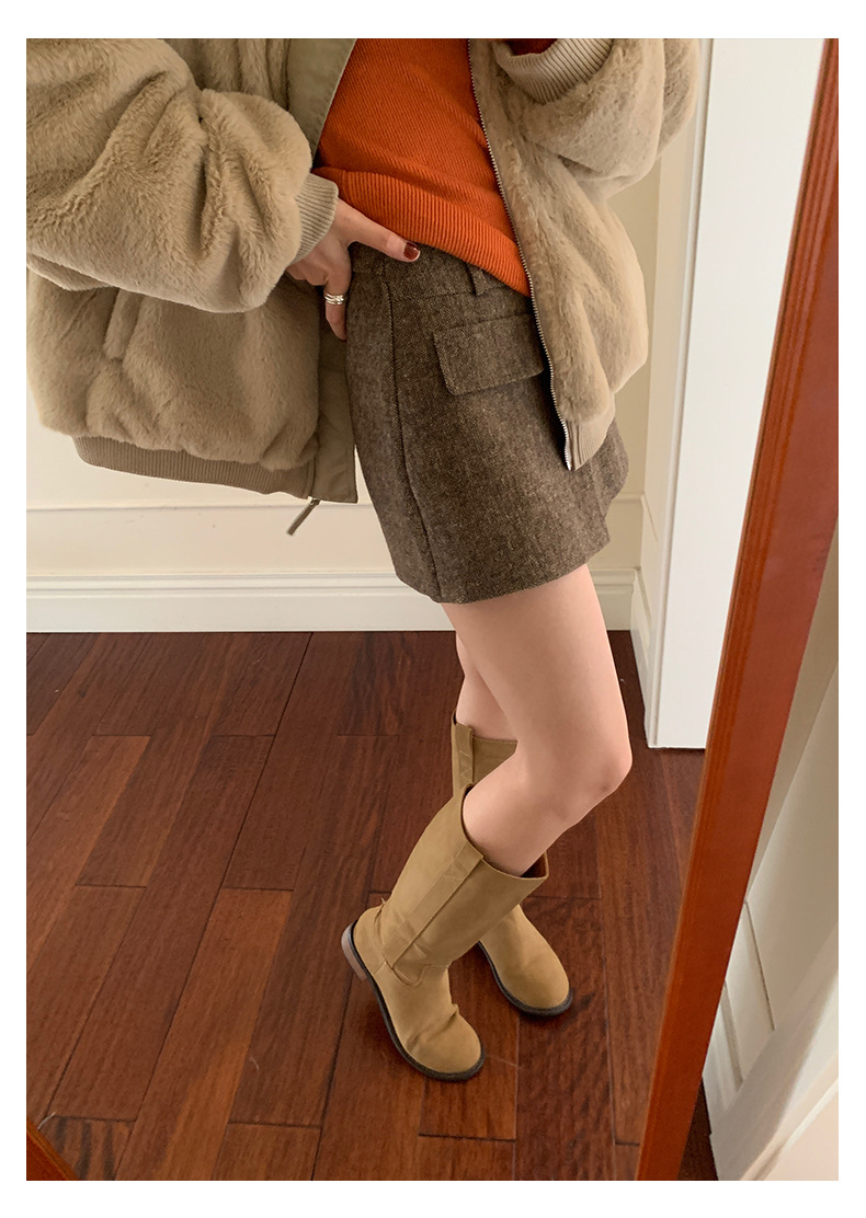 Huang Zheng's petite, high-quality, high-waisted skirt and pants for women in winter, Korean style, versatile and slimming, A-line body-hugging short skirt 541124