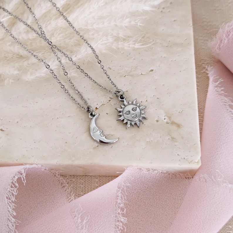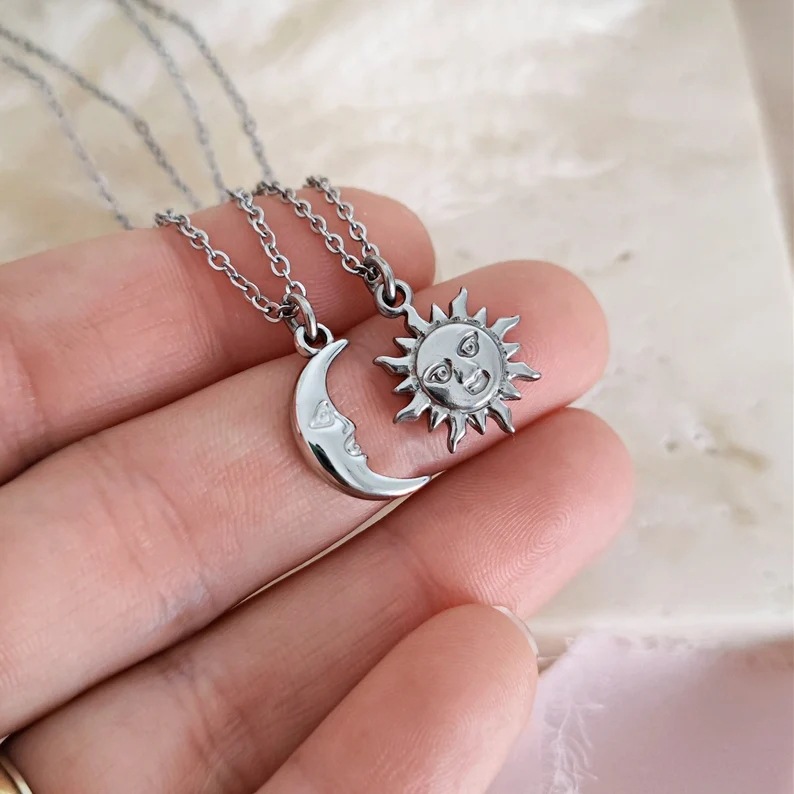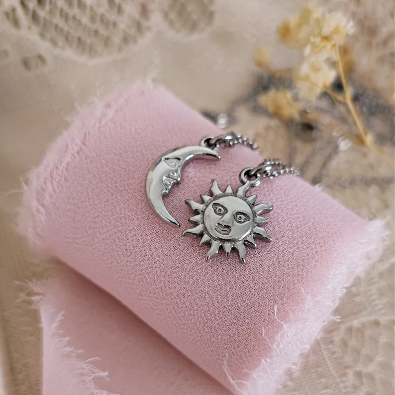 Hyacinth cross-border new Moon and Sun Necklace, flower titanium steel pendant, women's ins style, European and American personality design, sun and moon pendant collarbone