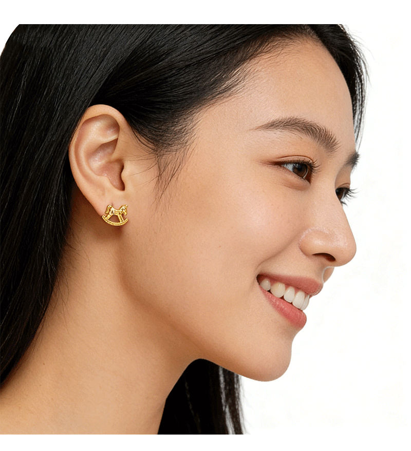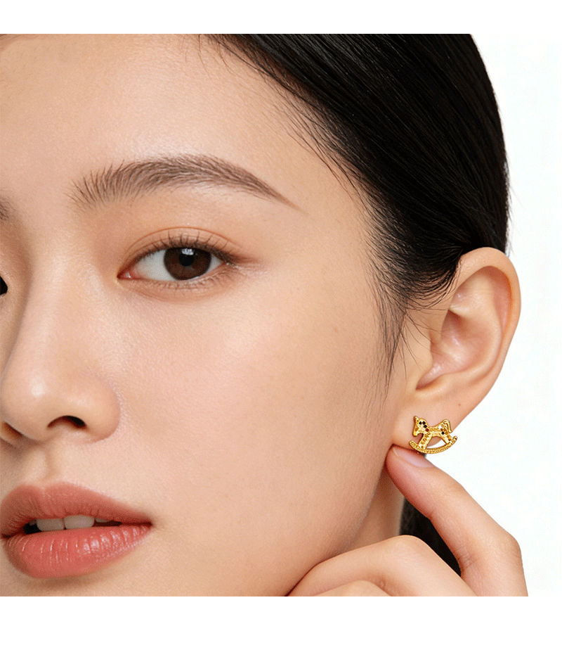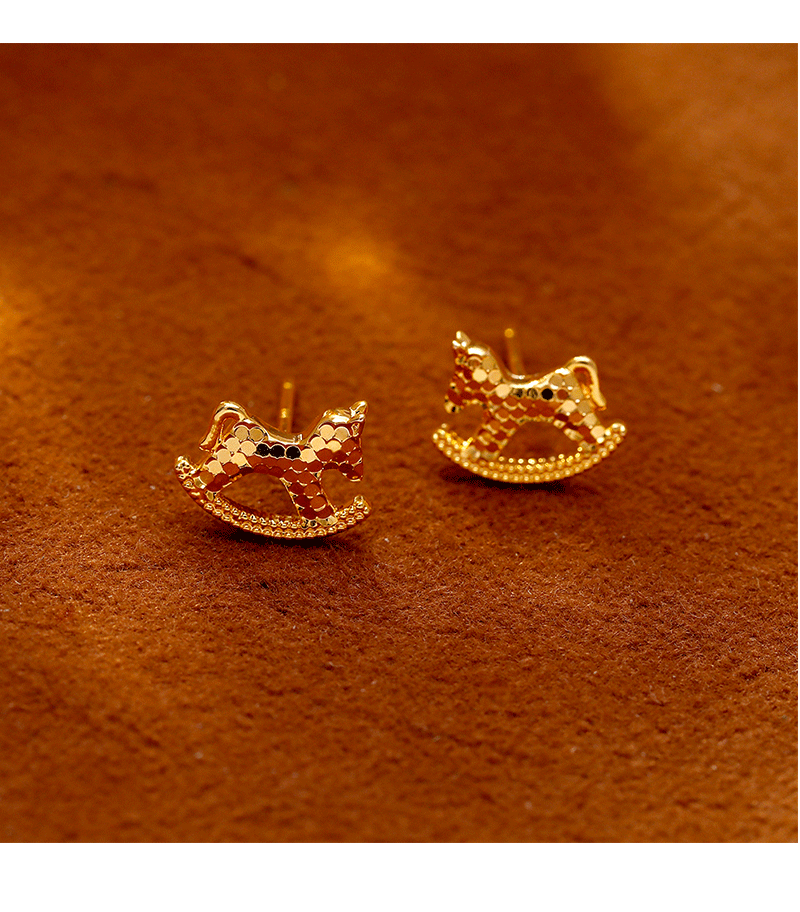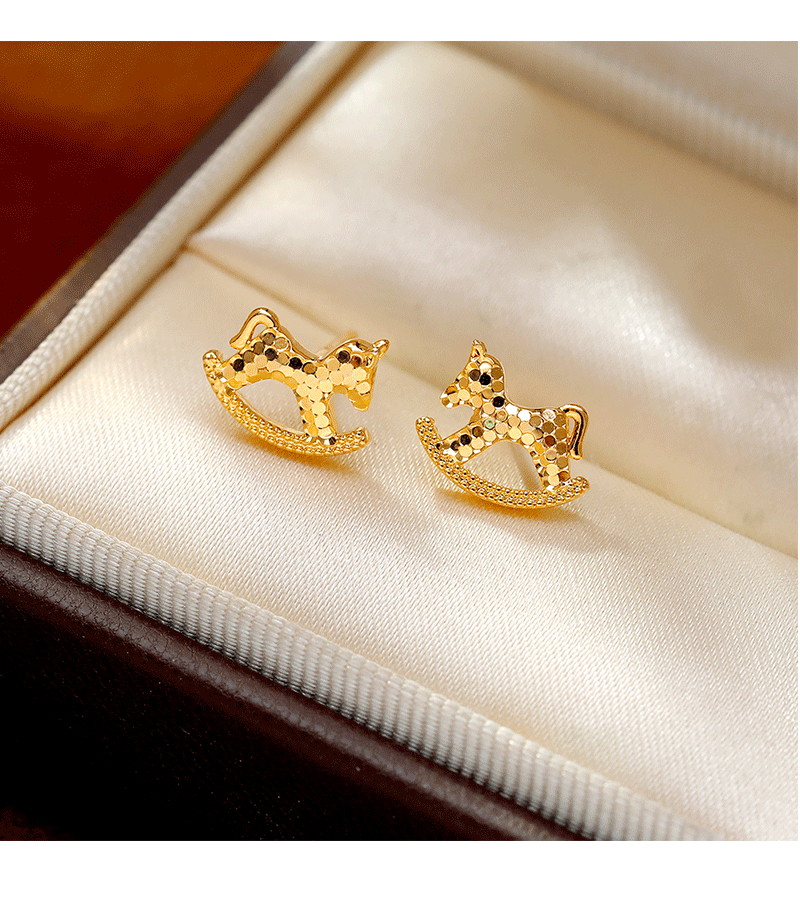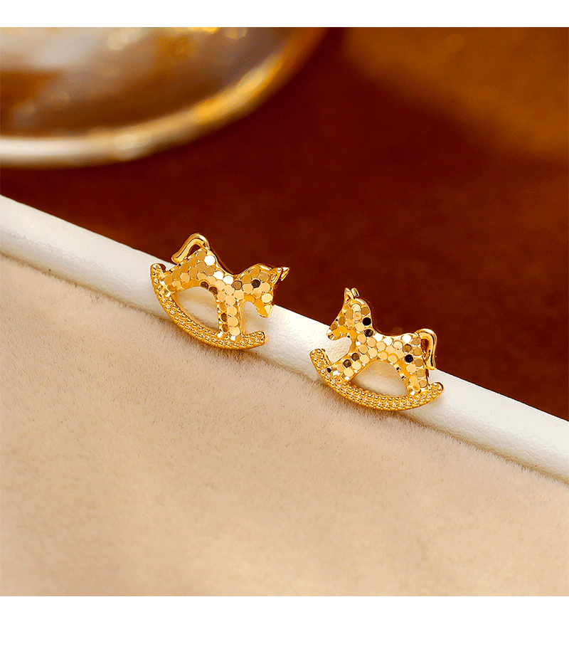 Hyacinth Golden Crushed Ice Pony Earrings, women's light luxury and high-end stud earrings, New Year's earrings 2026 new style, coming soon with money