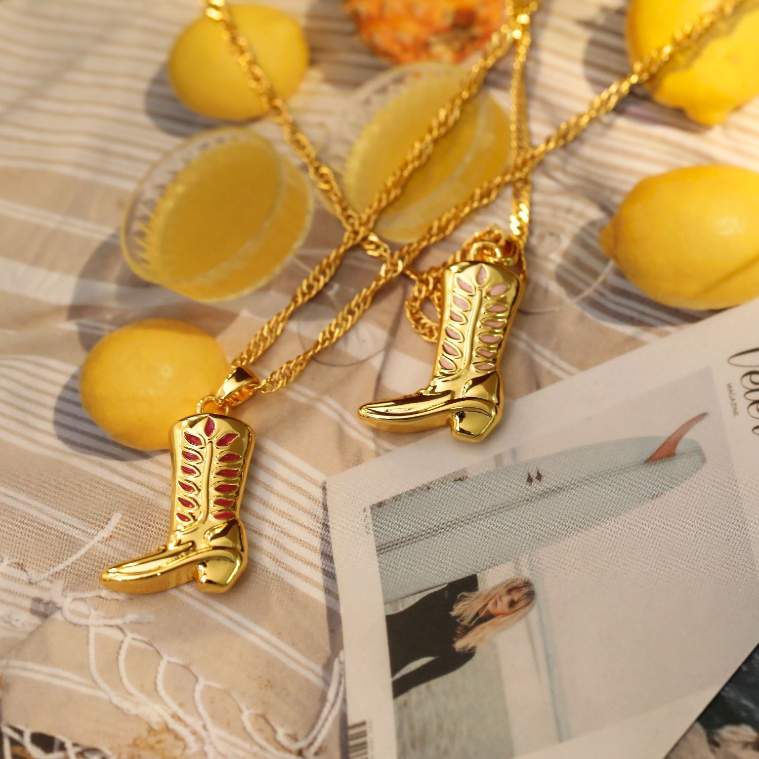 Hyacinth Hyacinth independent Store's best-selling European and American denim oil-dripping boots, denim hats, pendants, necklaces, copper furnace, real gold electroplated 18k women's collarbone chain, versatile for daily use