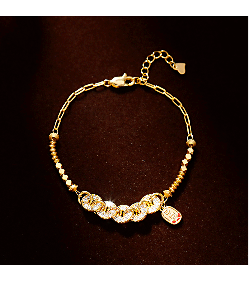 Hyacinth's Douyin bestseller, the Five Emperors Coin Broken Ice Plate Coiled Bracelet, is a fashionable, light luxury, elegant and high-end gesture item for women