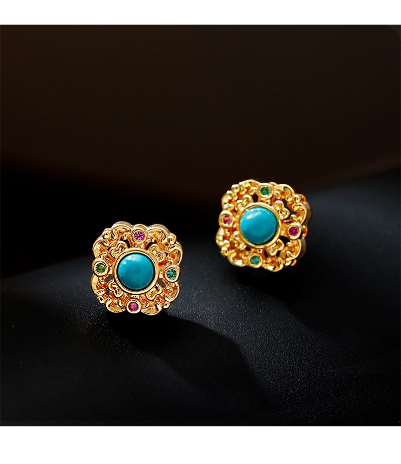 Hong Kong-style turquoise square stud earrings