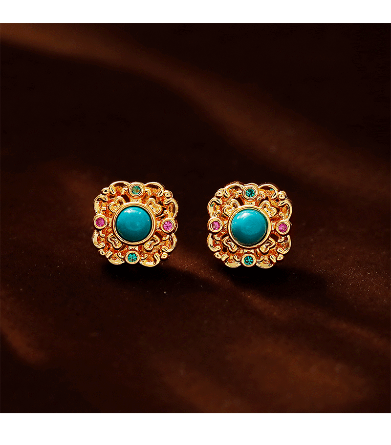 Hyacinth's original retro Hong Kong-style turquoise square stud earrings are a niche design hit on Douyin in 2025