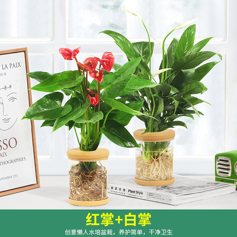 【 Smooth Sailing 】 Red anthurium + white anthurium +【 Hydroponic Bottle 】 Comes with nutrient solution