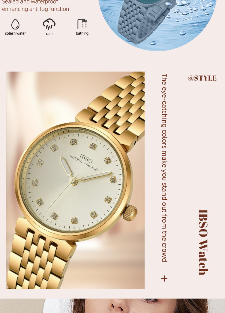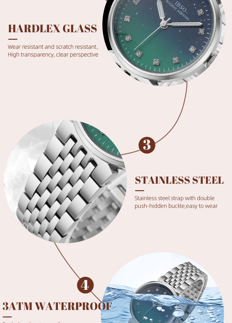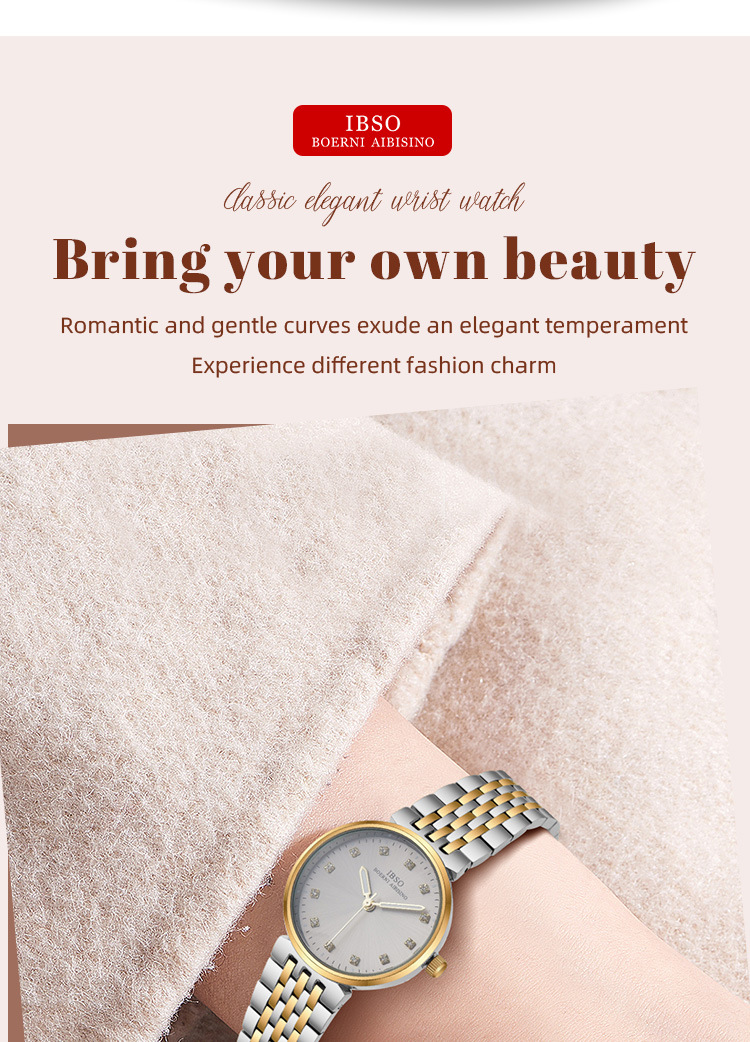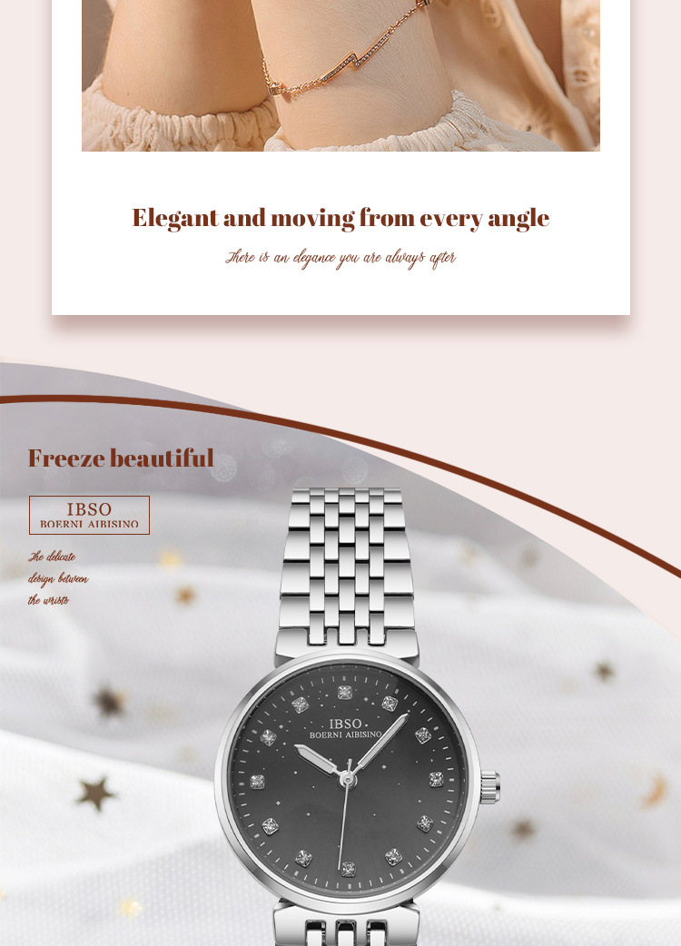 IBSO fashionable women's quartz watch with steel band and diamond setting, a light luxury women's watch for cross-border export