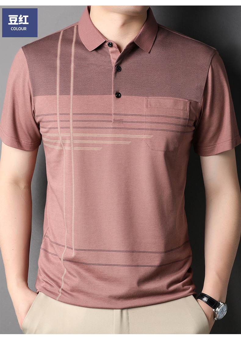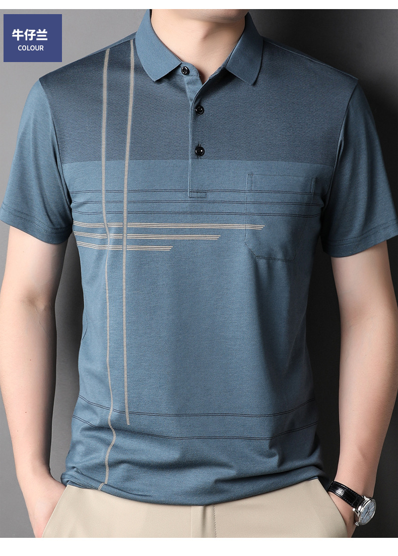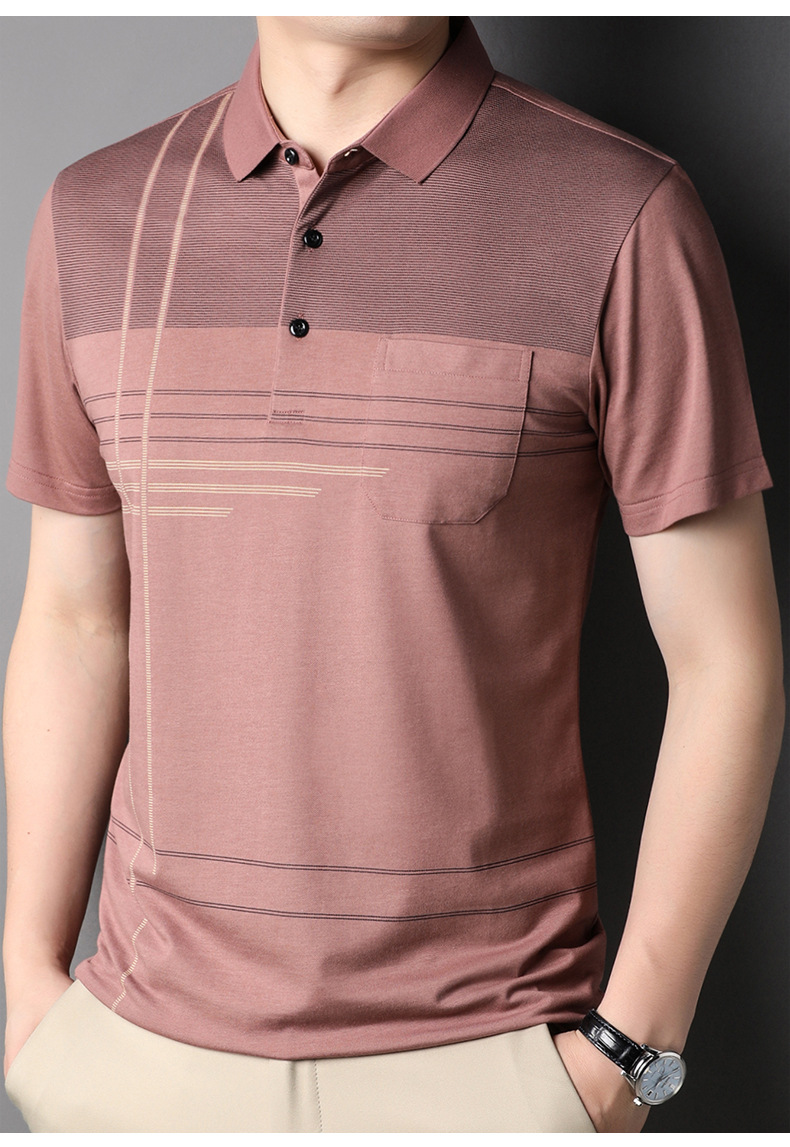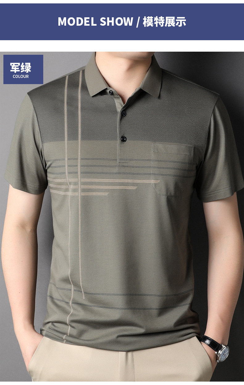 【 Ice Silk Cotton Cool 】 Dad's striped short-sleeved T-shirt, thin middle-aged and elderly men's summer wear, lapel pocket men's summer