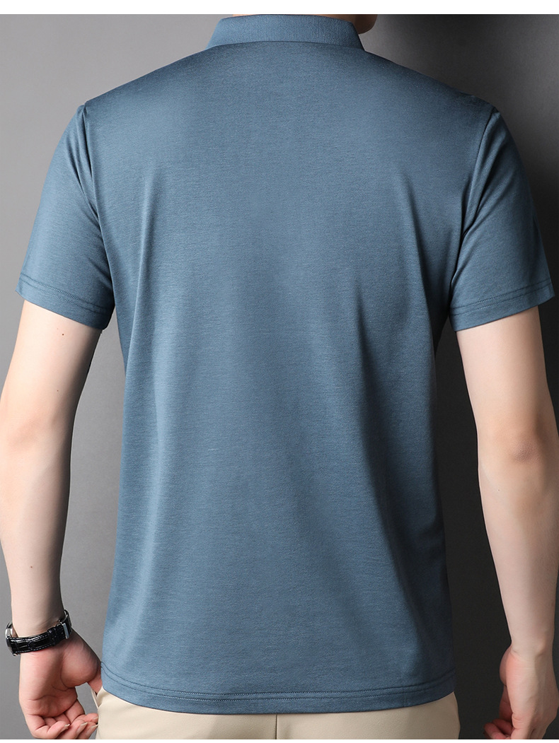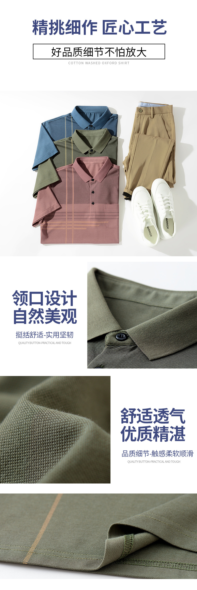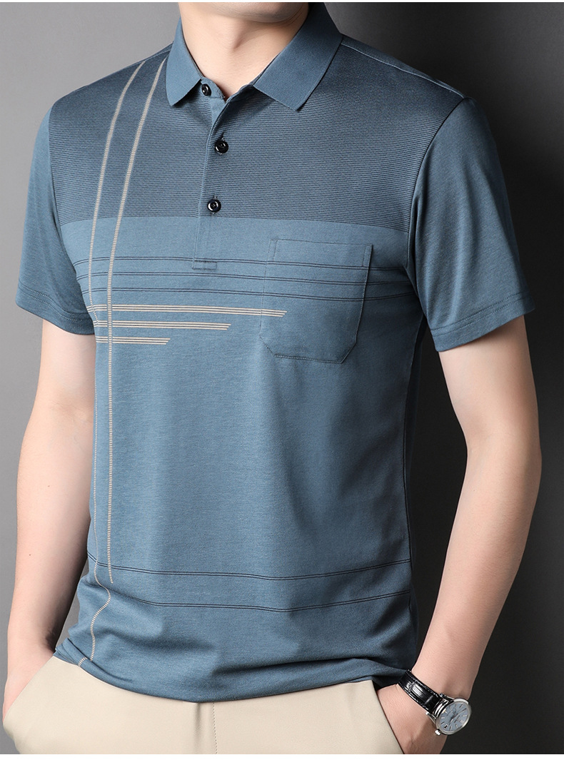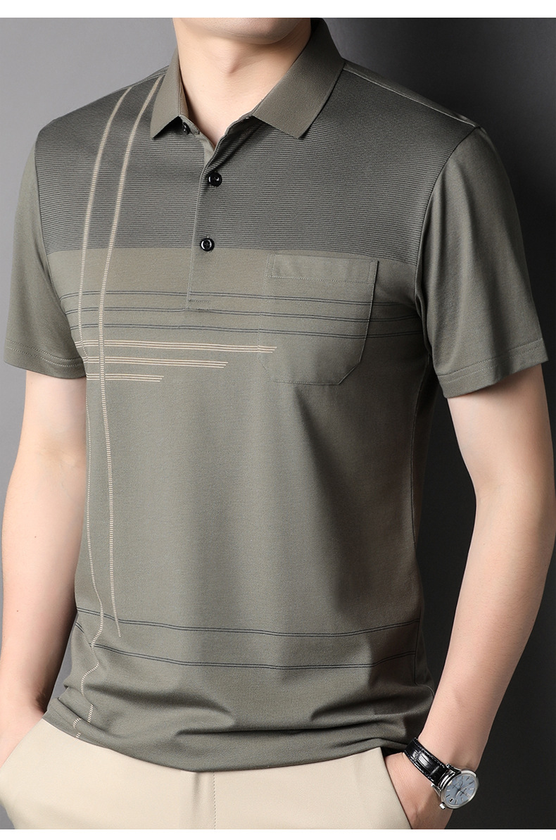 【 Ice Silk Cotton Cool 】 Dad's striped short-sleeved T-shirt, thin middle-aged and elderly men's summer wear, lapel pocket men's summer