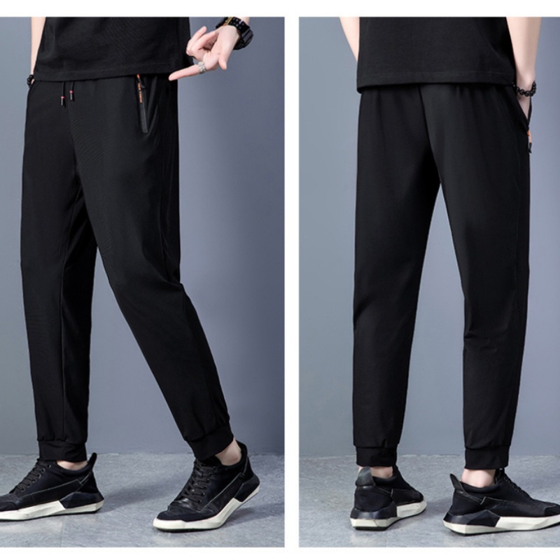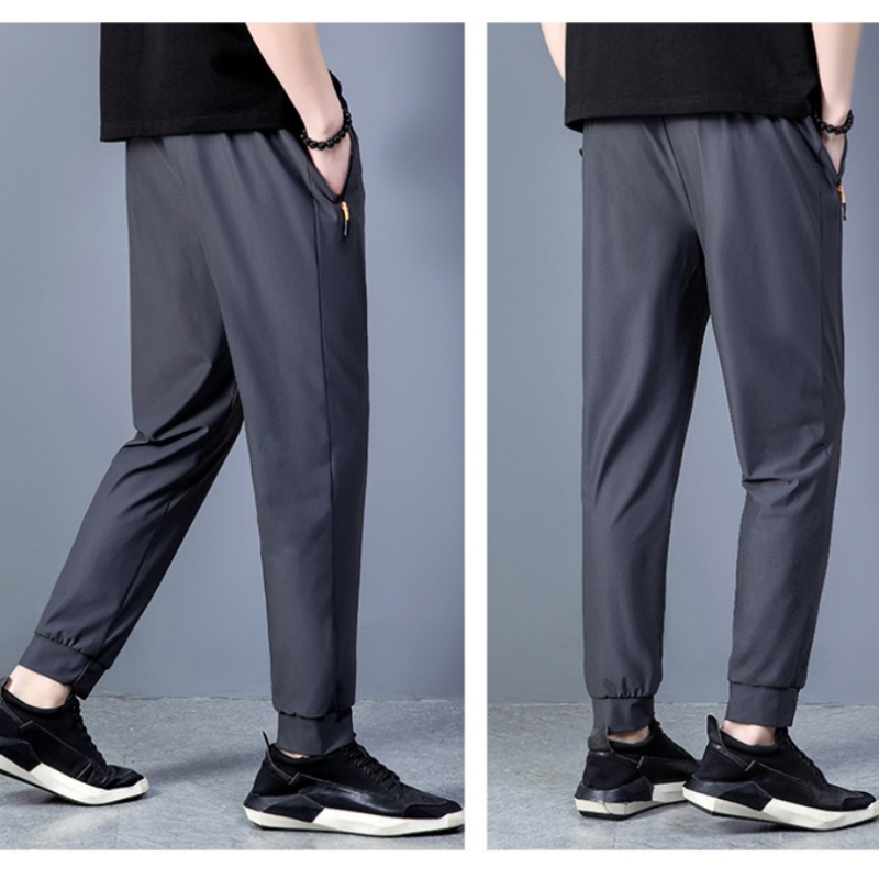 Ice silk nylon casual pants for men 2023 summer, elastic straight leg tapered sports pants, business quick-drying pants for men