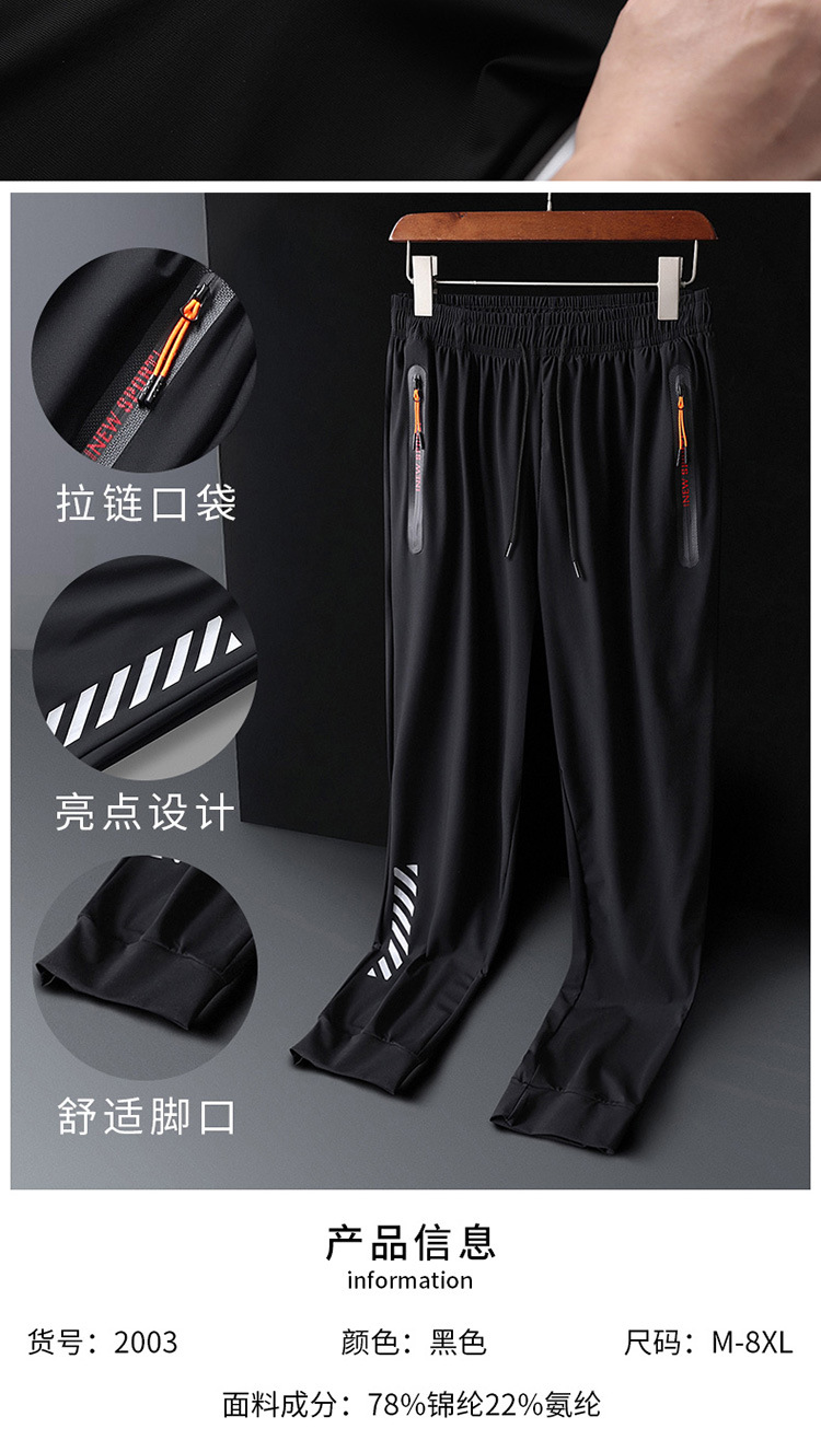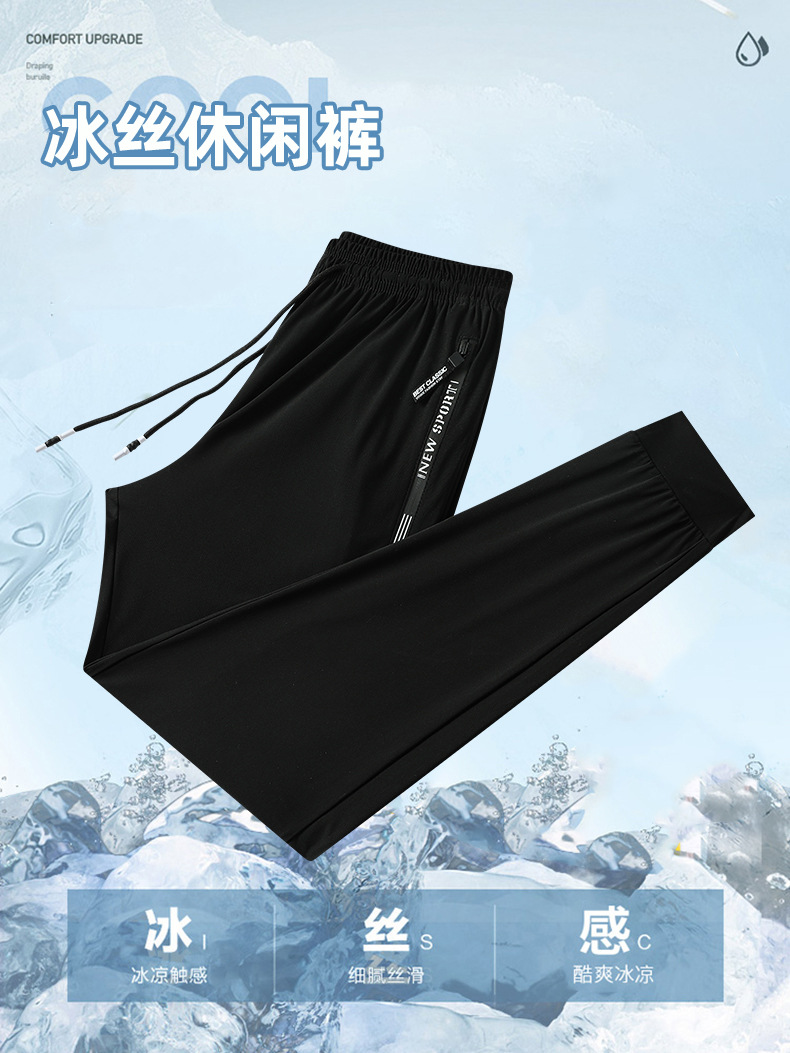 Ice silk pants, summer thin men's casual pants, breathable and loose air-conditioned men's pants, stretch quick-drying men's sportswear pants, large size