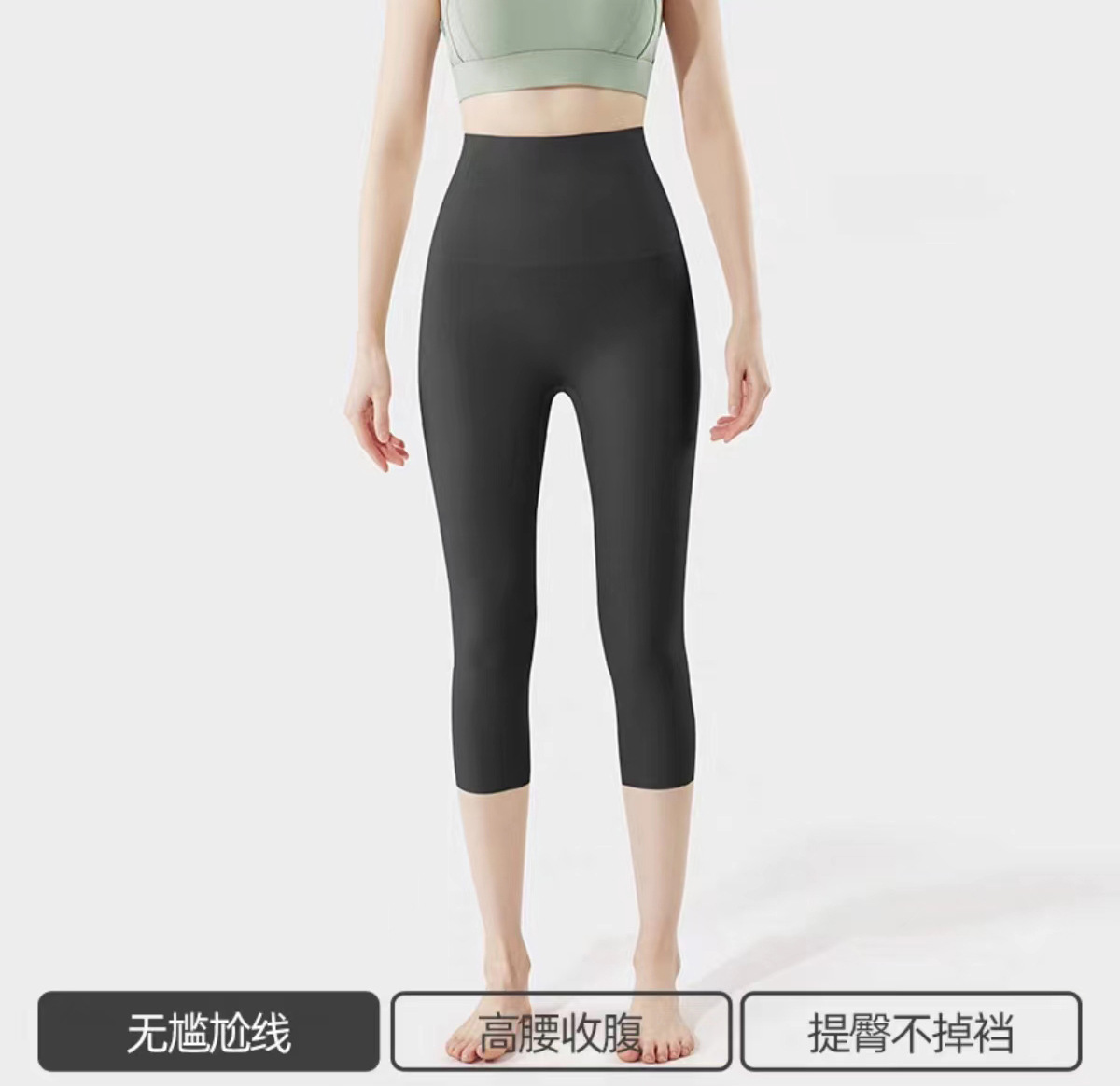 Ice Silk seven-point shark pants for women's outerwear in summer, thin, tight, elastic, seamless leggings, high-waisted yoga Barbie pants