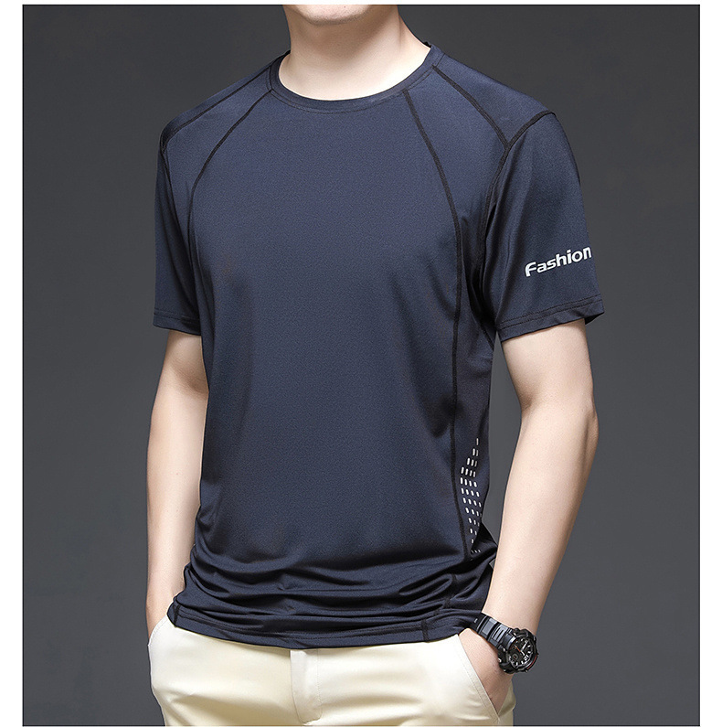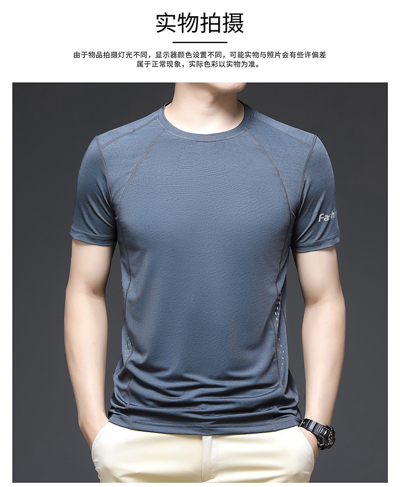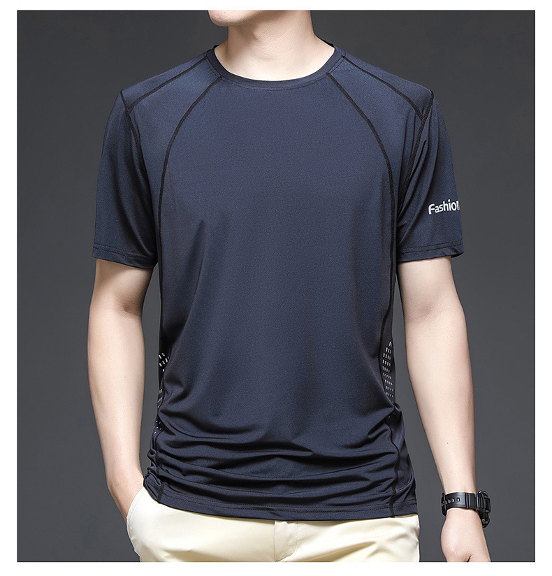 Ice Silk short-sleeved T-shirt for men's summer, a thin and versatile sports quick-drying top, 2024 new style base layer for men's wear