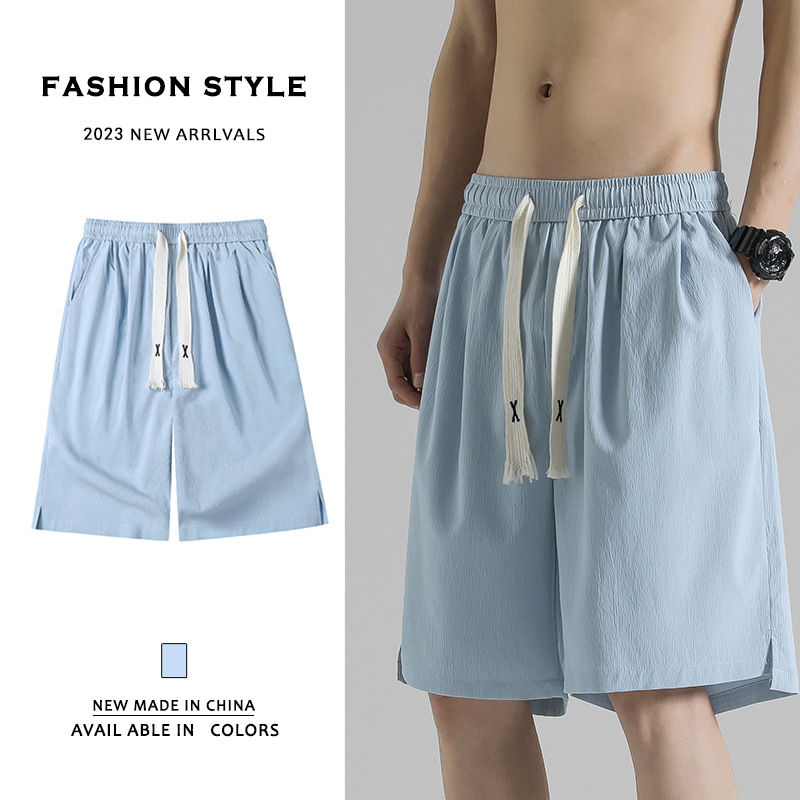 Ice silk shorts for men, summer thin basketball sports, quick-drying beach mid-length pants, loose workwear, casual 5-inch pants
