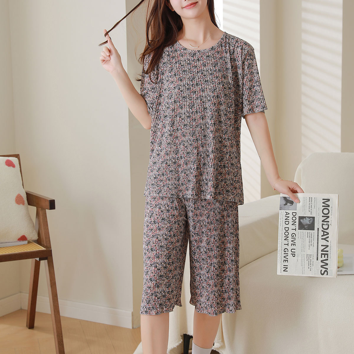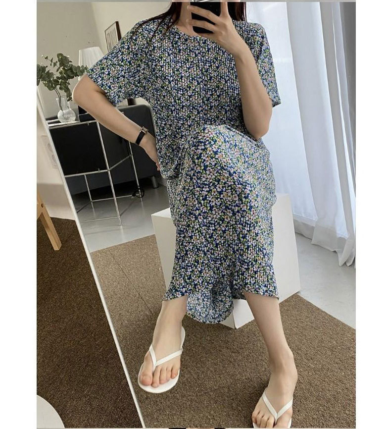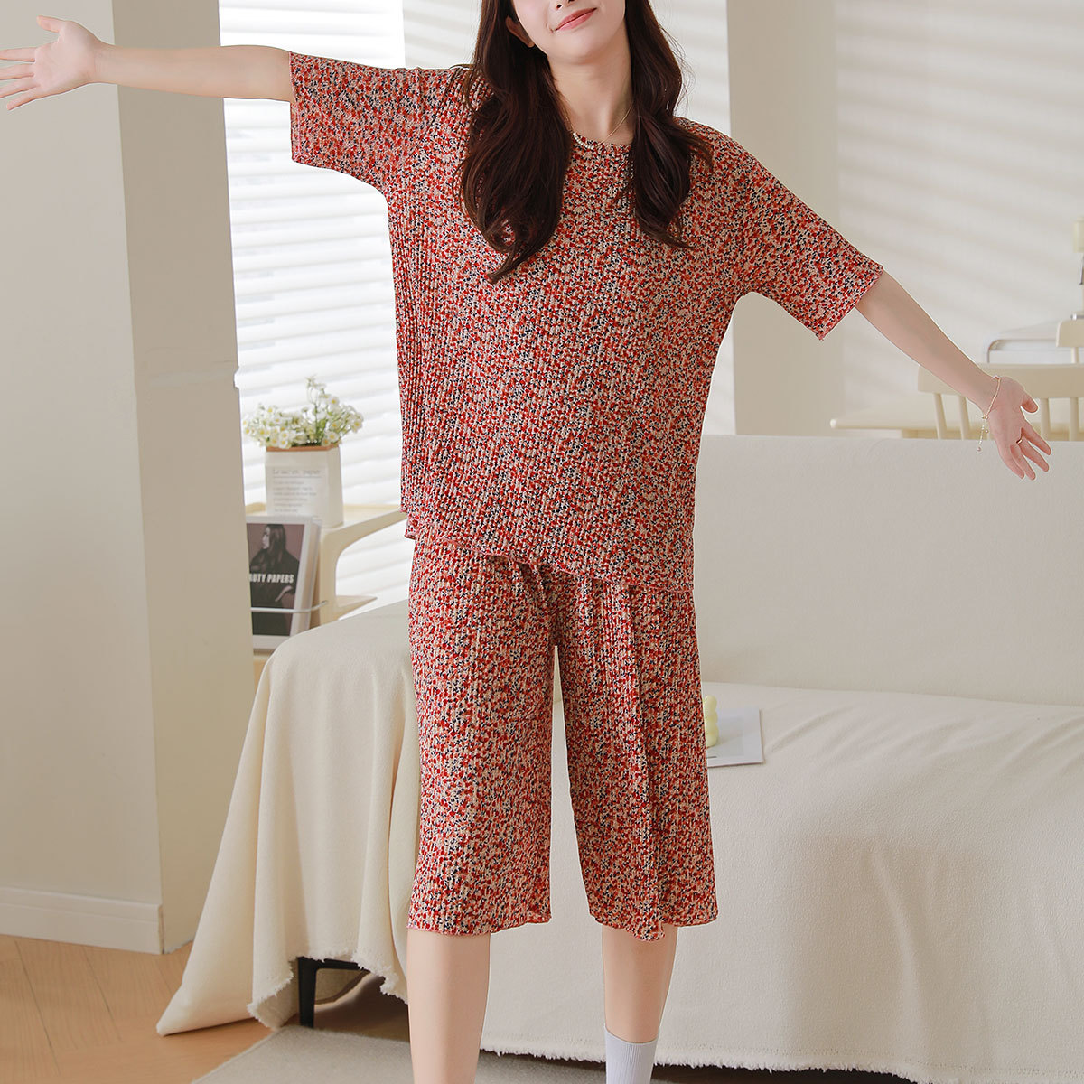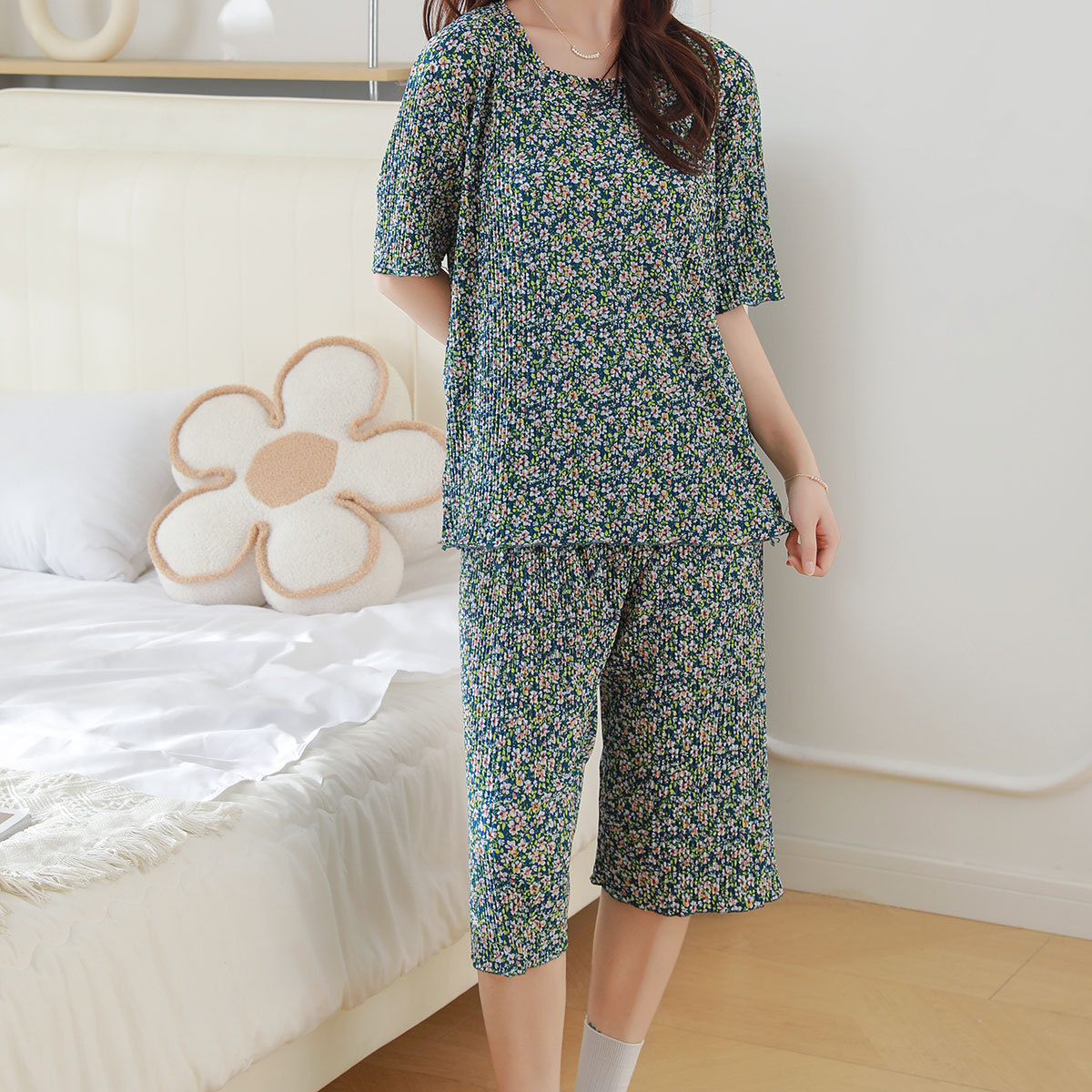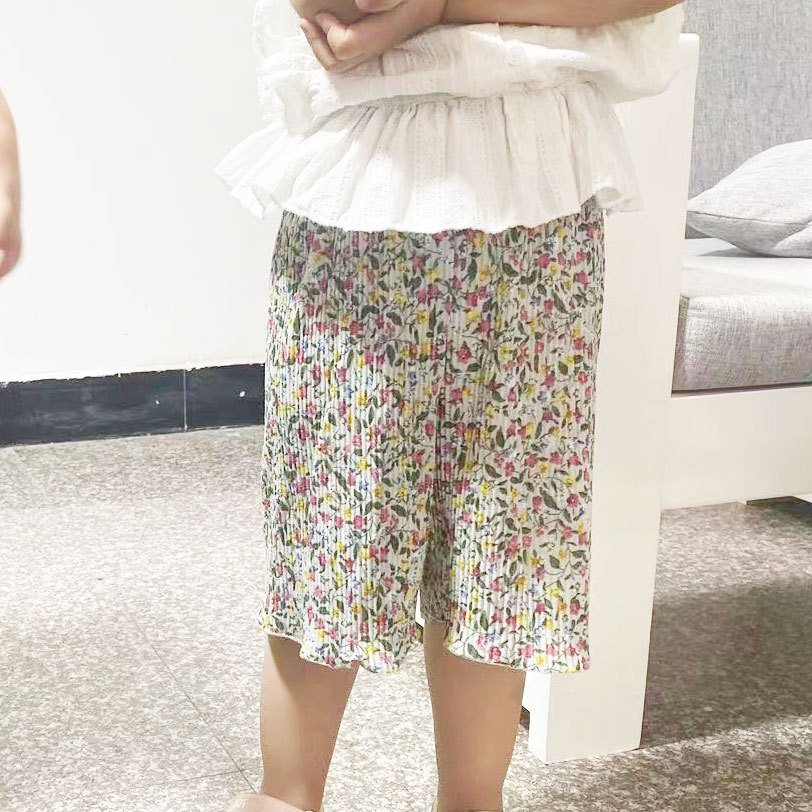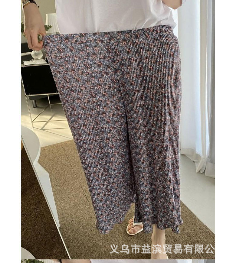 Ice silk wide-leg women's spring and summer thin pajama pants, high-waisted, drape, pleated, laid-back style, floral print home casual pants, Korean style
