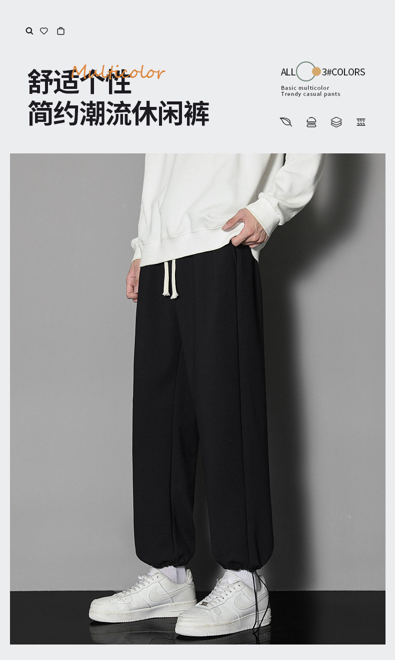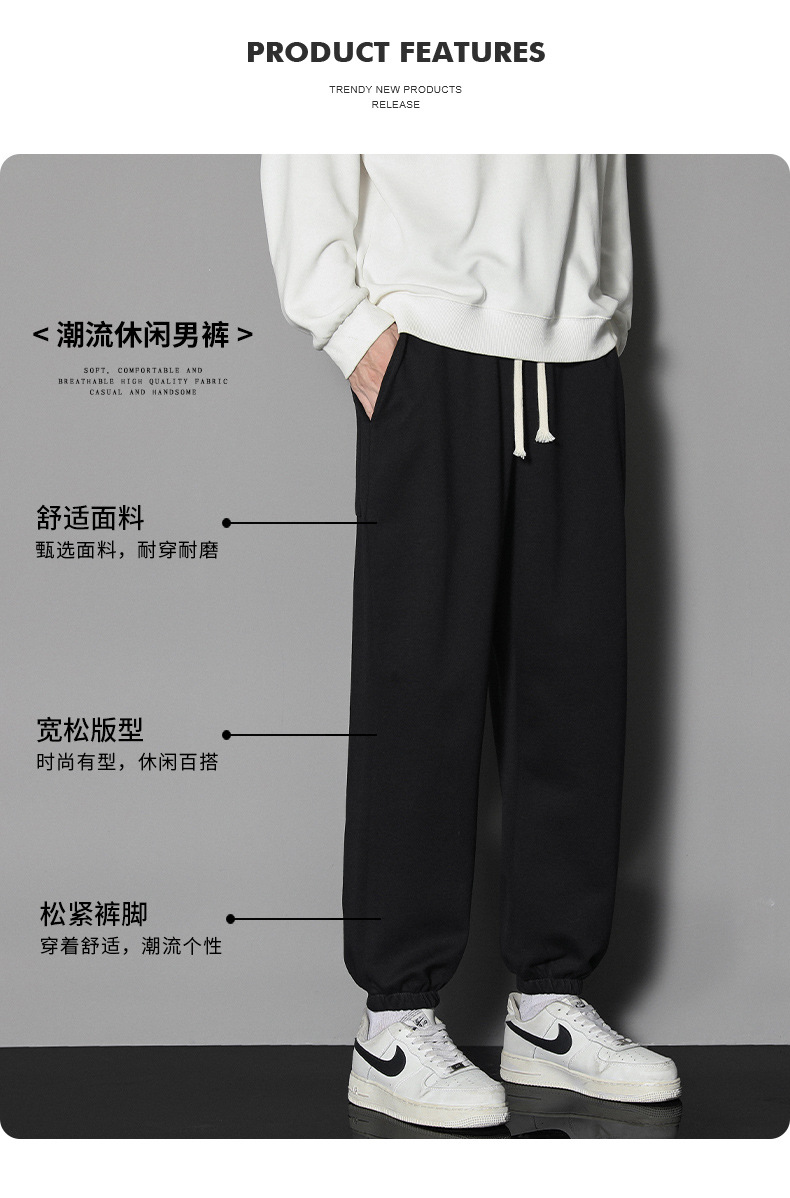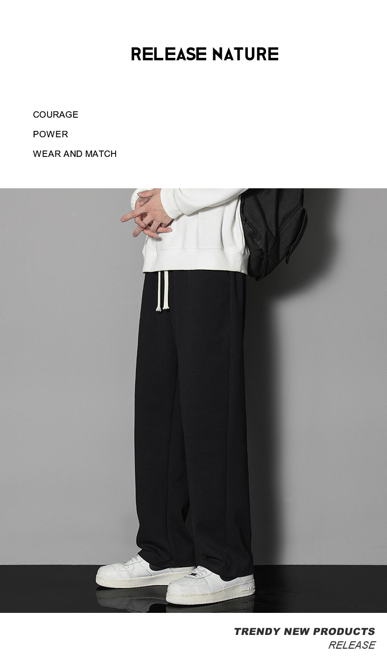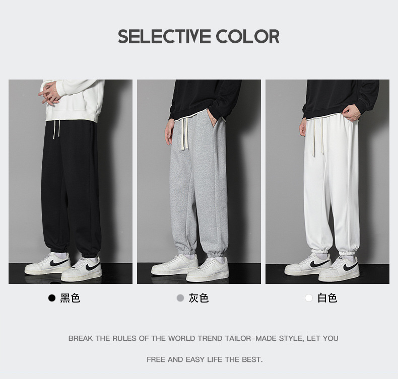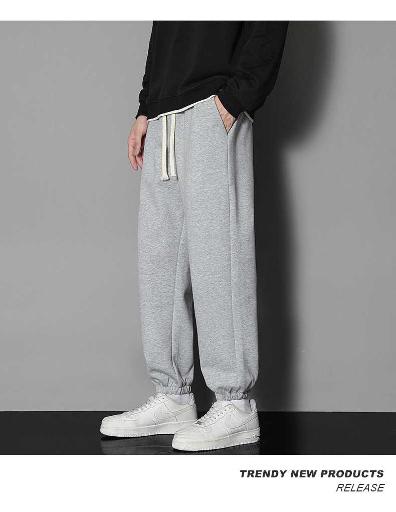In 2022, men's autumn trend: Loose solid color men's casual pants, sportswear pants, large size, thin style, ins Hong Kong trend