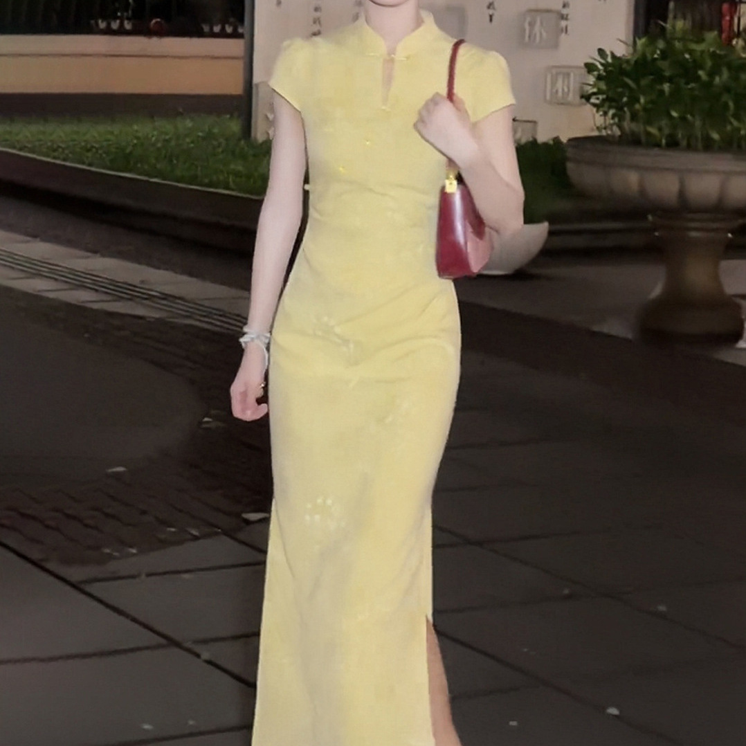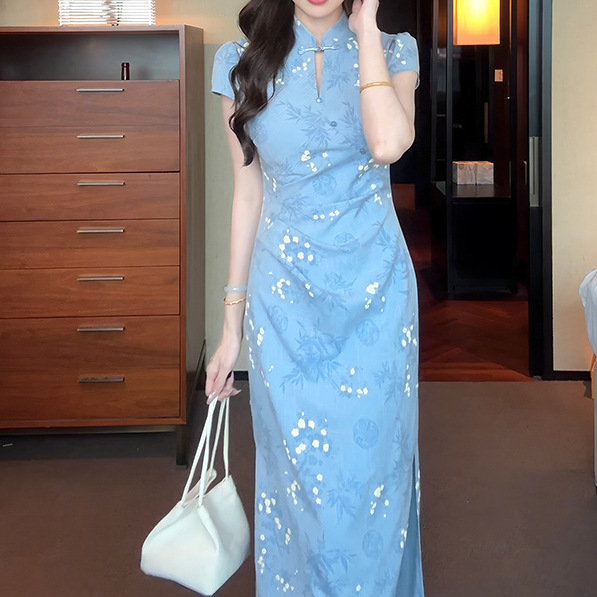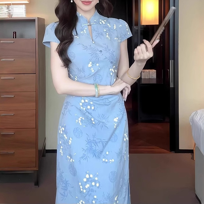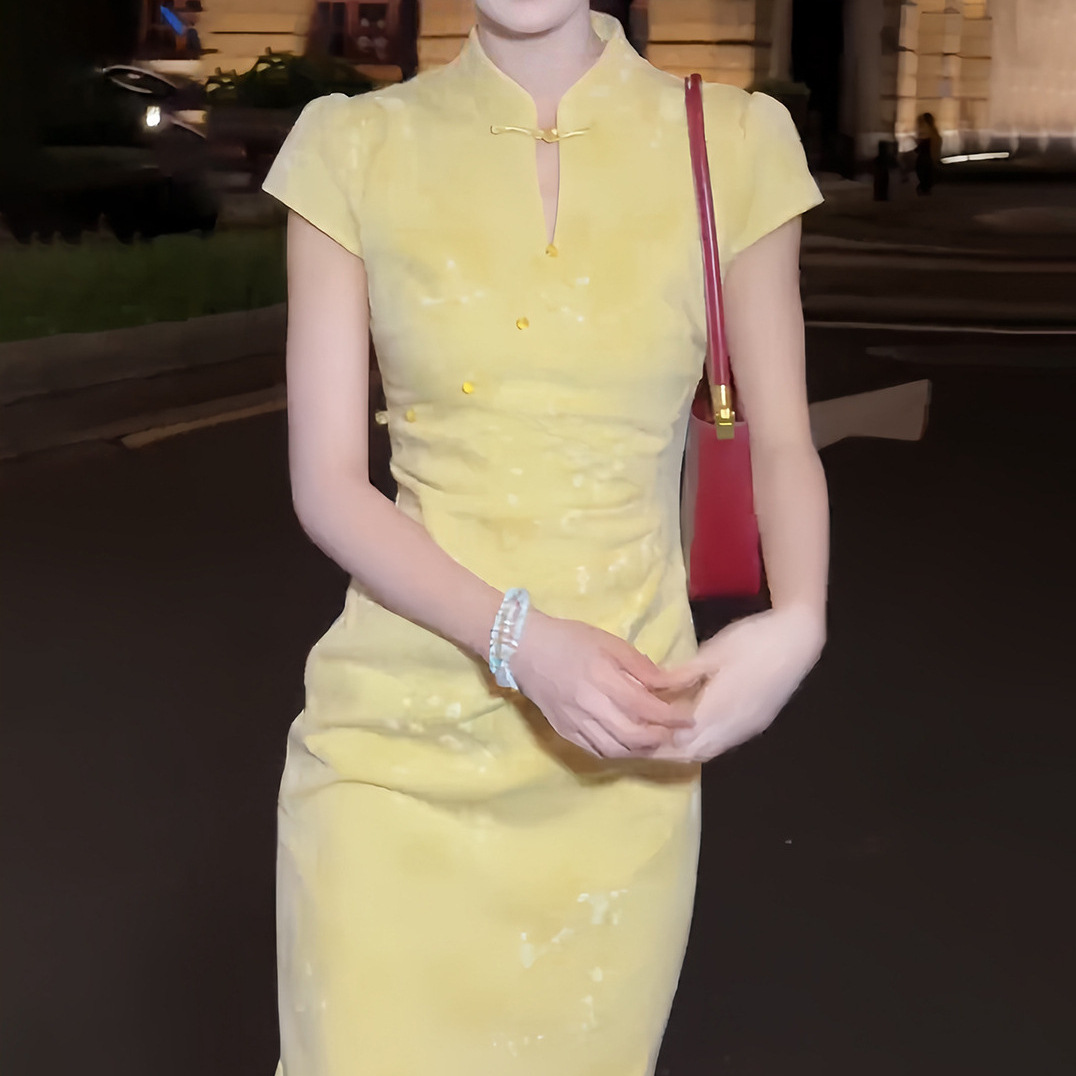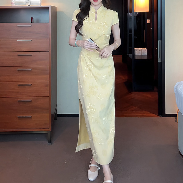 In 2025, the "Ruchu" new Chinese-style jacquard improved cheongsam is a stunning female summer dress with a neckline and a cinched waist