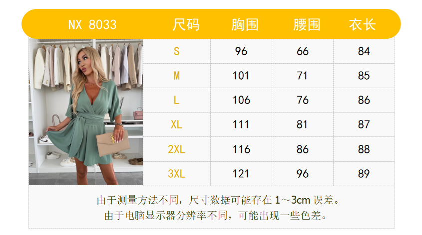In-stock Amazon European and American women's clothing 2025, fashionable and elegant short skirts, V-neck short sleeves, lace-up casual jumpsuits
