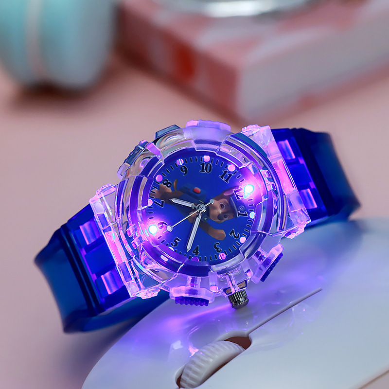 In stock: Children's kindergarten luminous watches, Paw Patrol seven-color flash boys' quartz wristwatches
