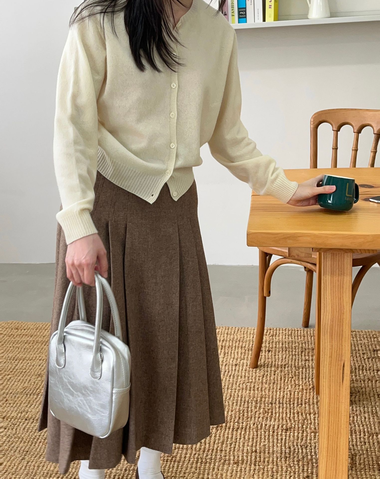 In stock for 2023, Han Dongdaemun's early autumn new ERU casual, simple and gentle style wool sweater, knitted cardigan for women
