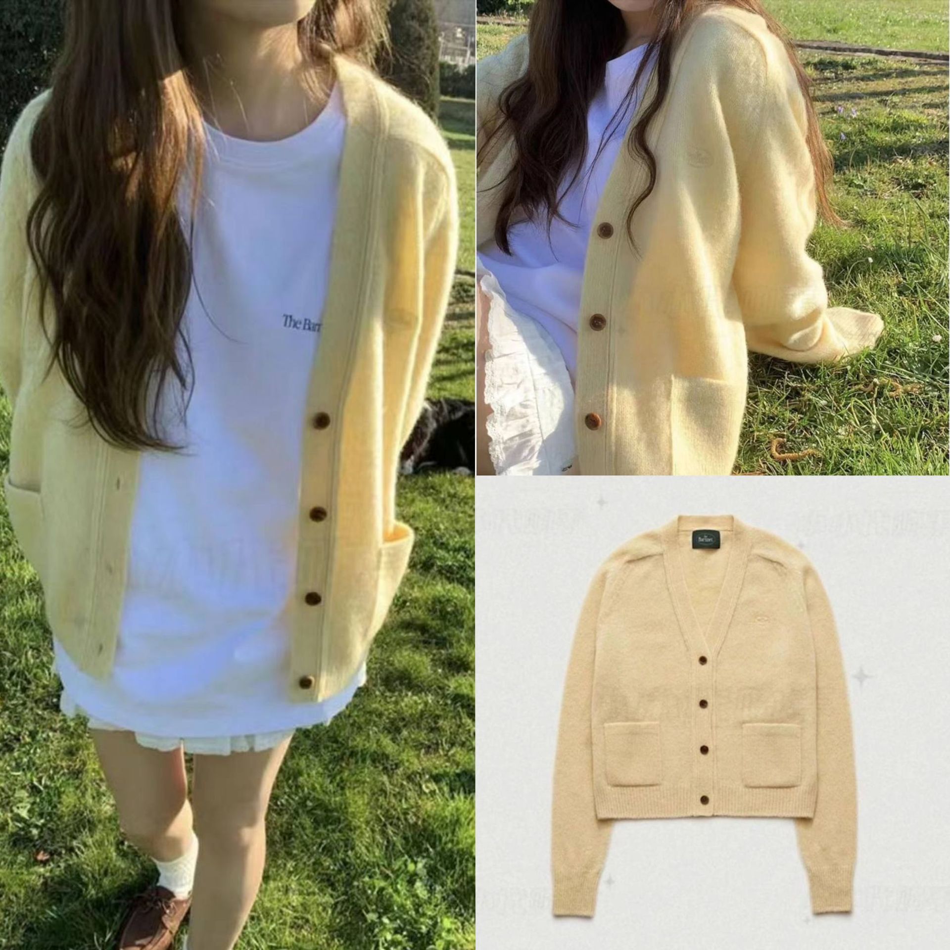 The gentle cream-colored single-breasted casual loose knitted cardigan from thebarnnet, a niche girl in Dongdaemun, South Korea
