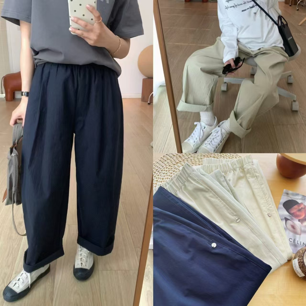 In Dongdaemun, South Korea, egg House's 24th autumn collection features petite, wide-leg, high-waisted, slimming straight-leg Harem casual pants for women