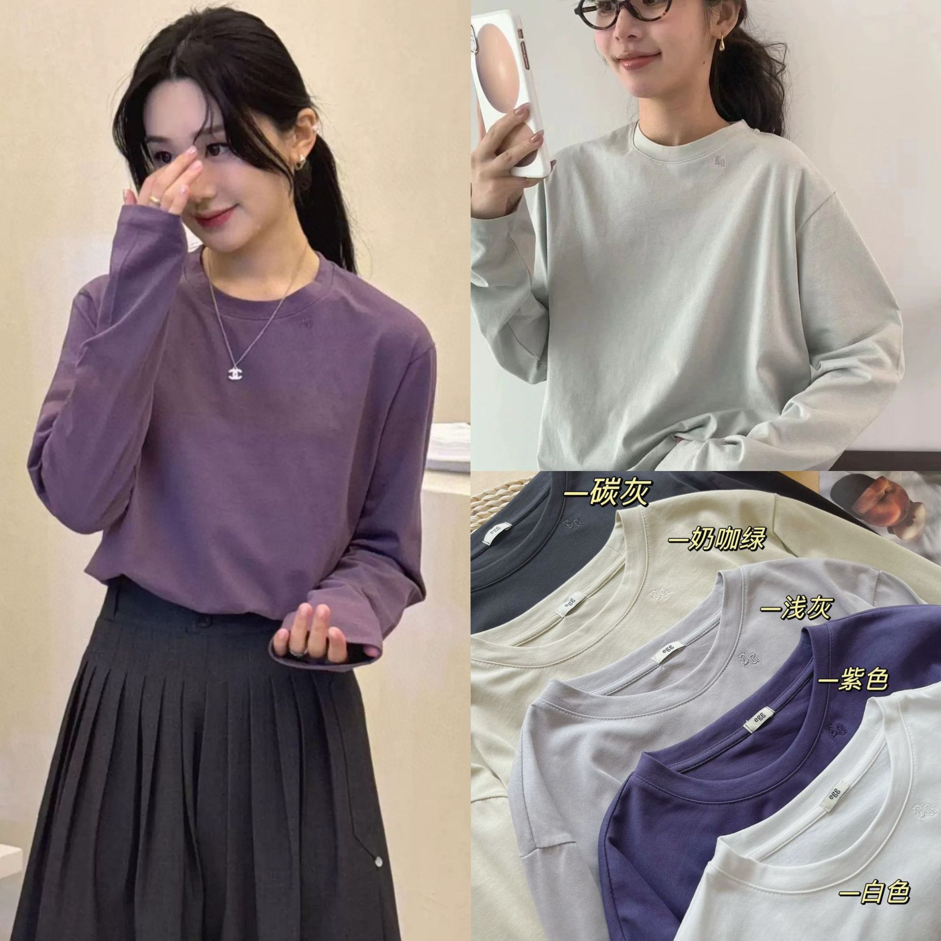 In stock ~ Korean egg House 2024 Autumn new style slit embroidery round-neck long-sleeved T-shirt base layer for women