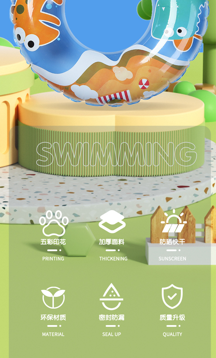 | Wholesale swimming rings, children's seat rings, cartoon cute animals, thickened PVC safe children's swimming rings, inflatable lifebuoys |