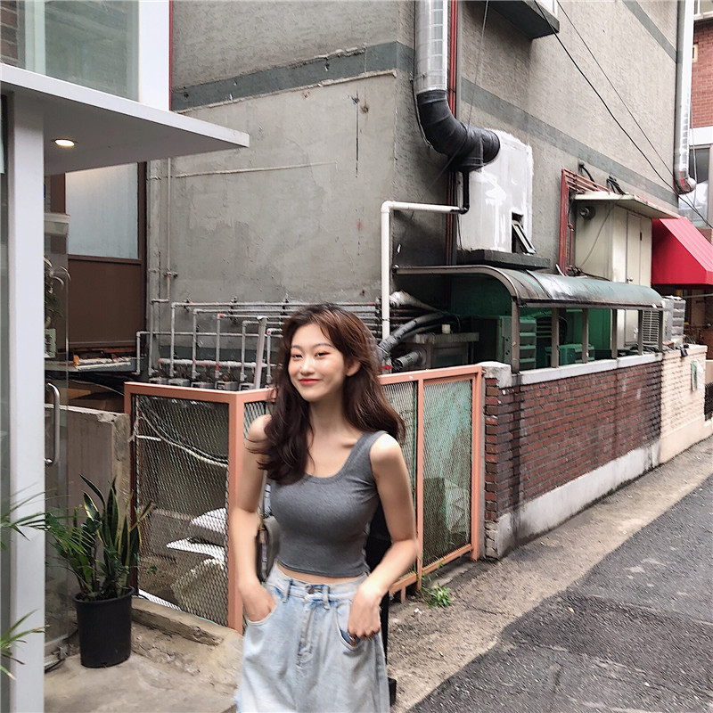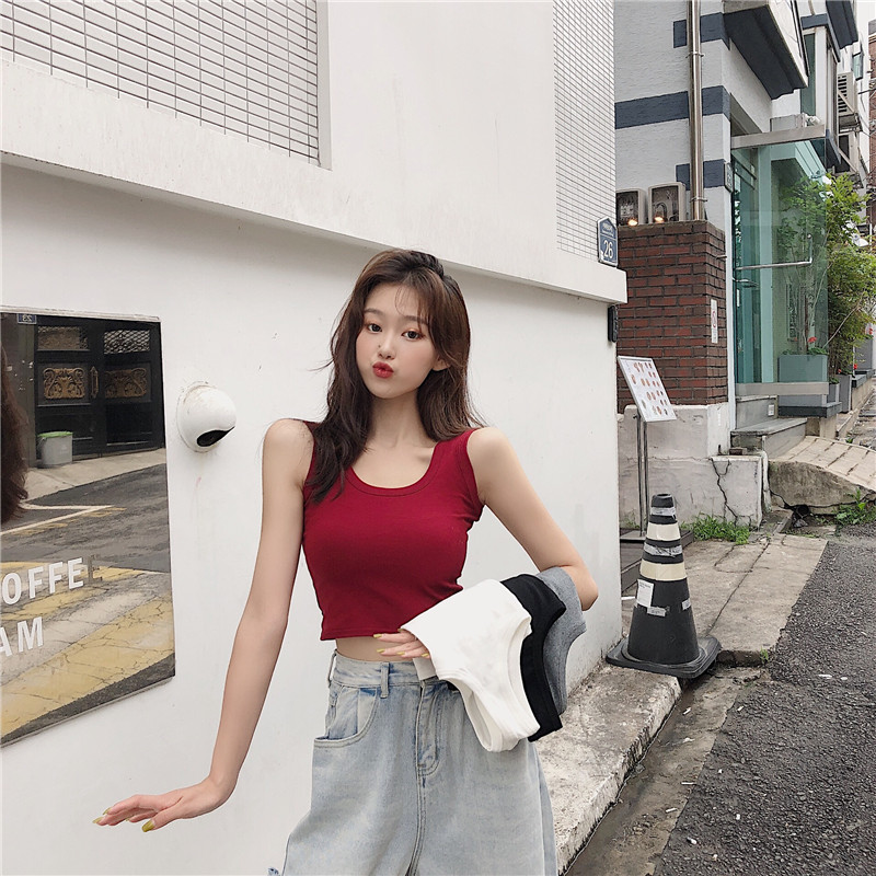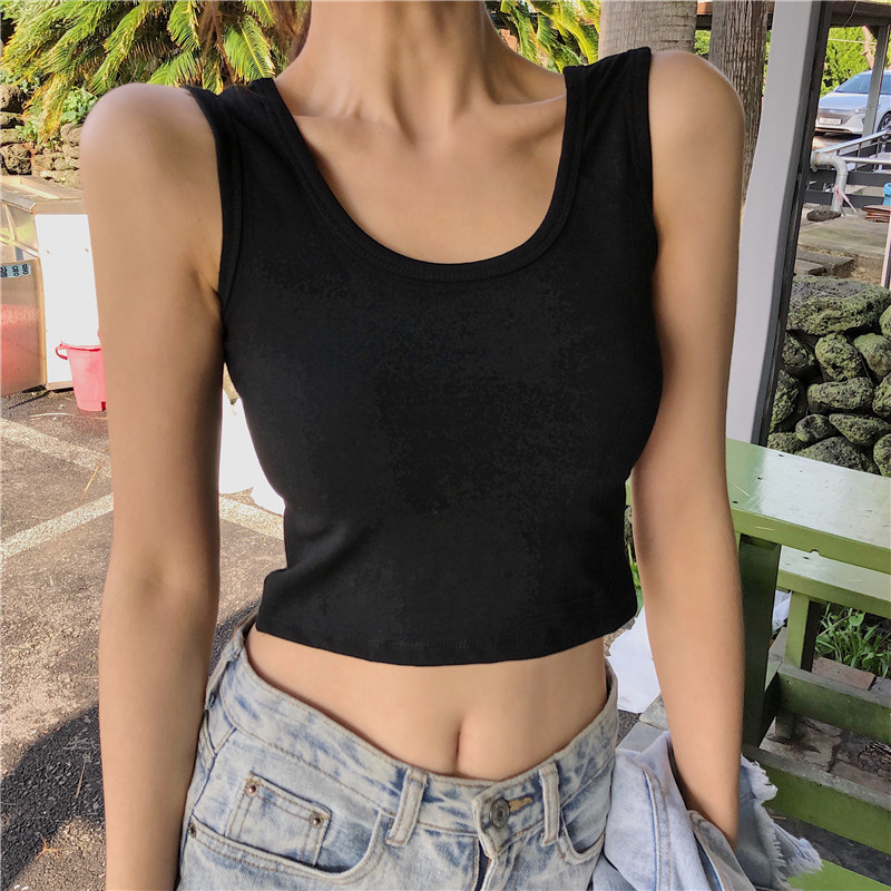 In summer, it's trendy to wear a short, sporty Hyuna top with a halter top for women and a crop top with a slimming base layer