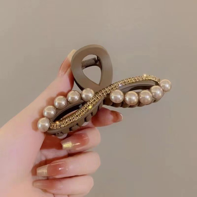 In the summer of 2025, the new hair clip for women with a high-end look at the back of the head is sold directly by the manufacturer. It is a large women's pearl and diamond-encrusted grab clip