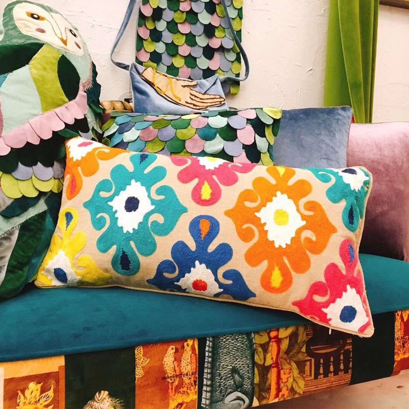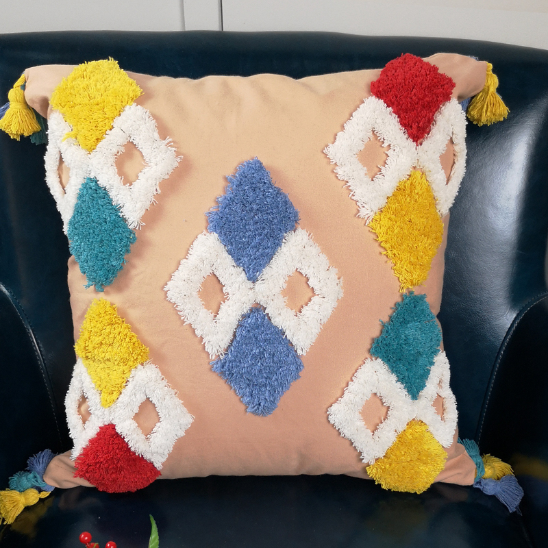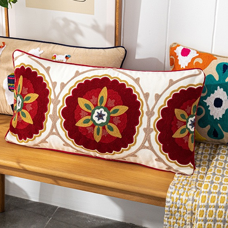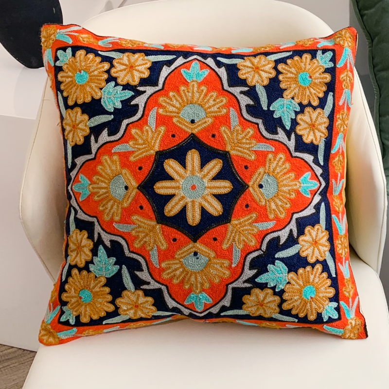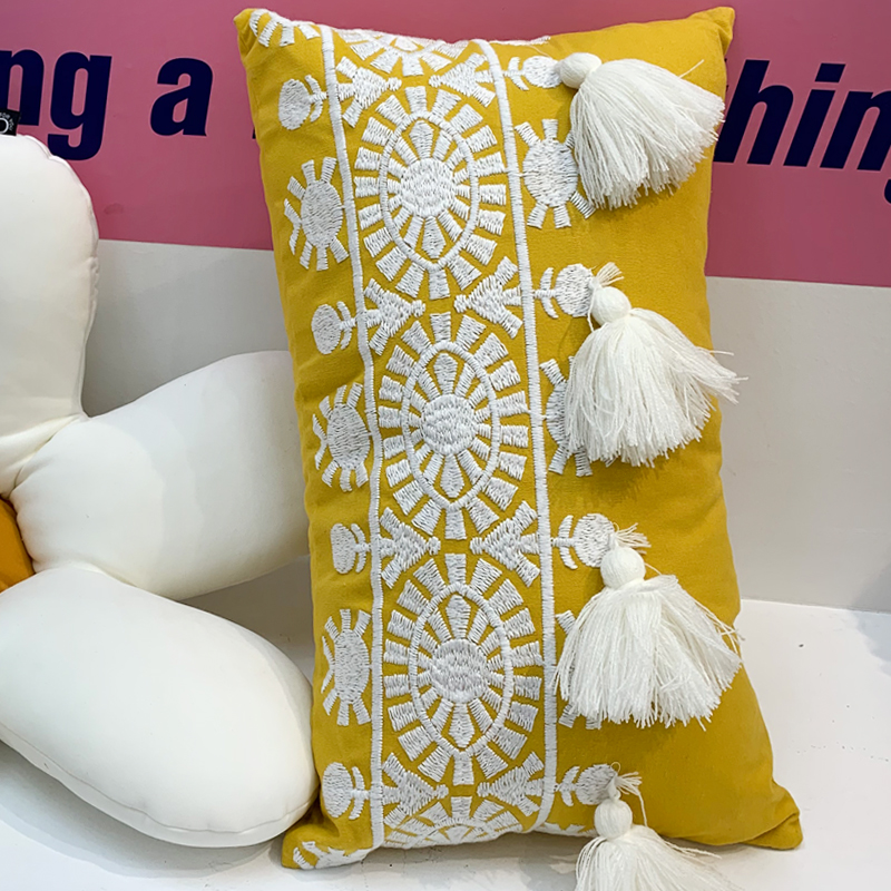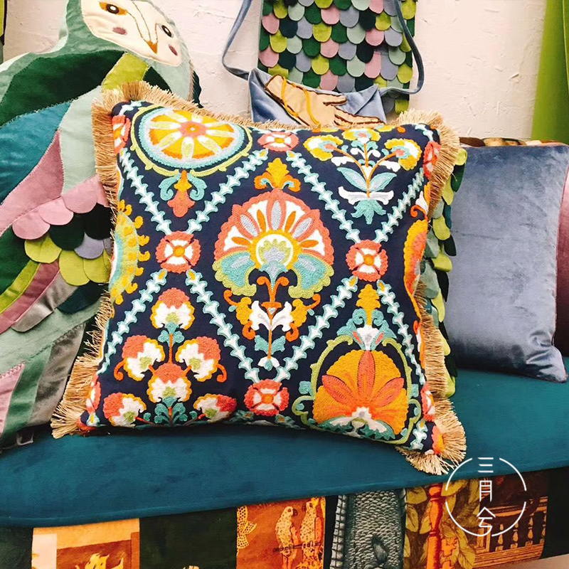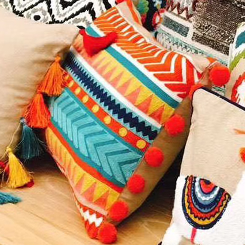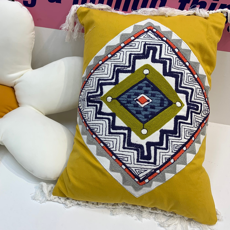Indian-style handcrafted cushions for the model room of a homestay hotel, embroidered throw pillows, living room sofa cushions, cotton and linen waist pillows
