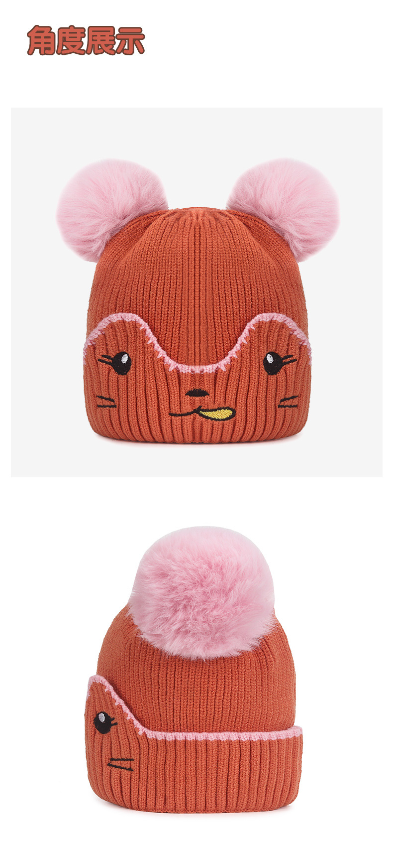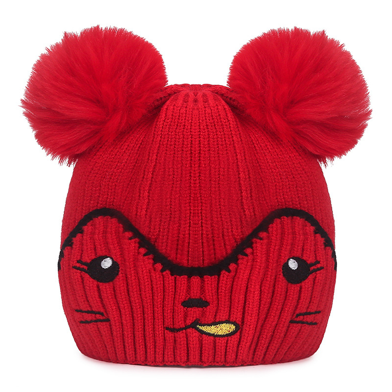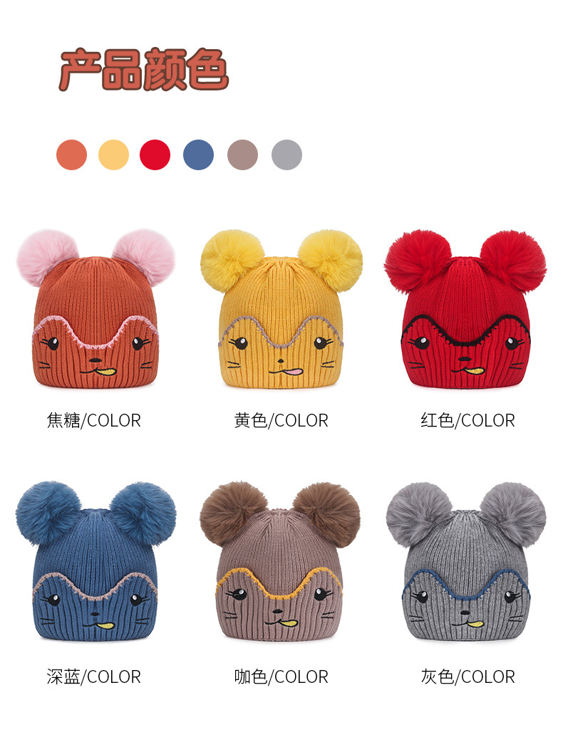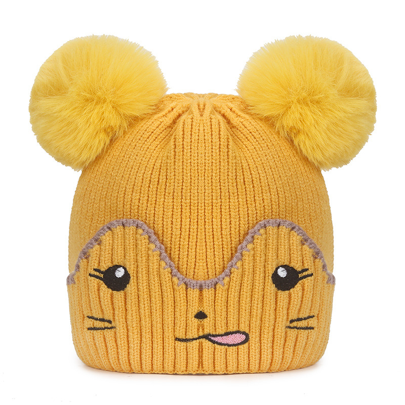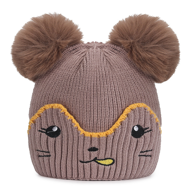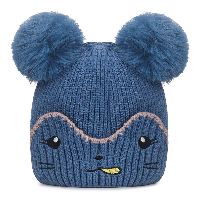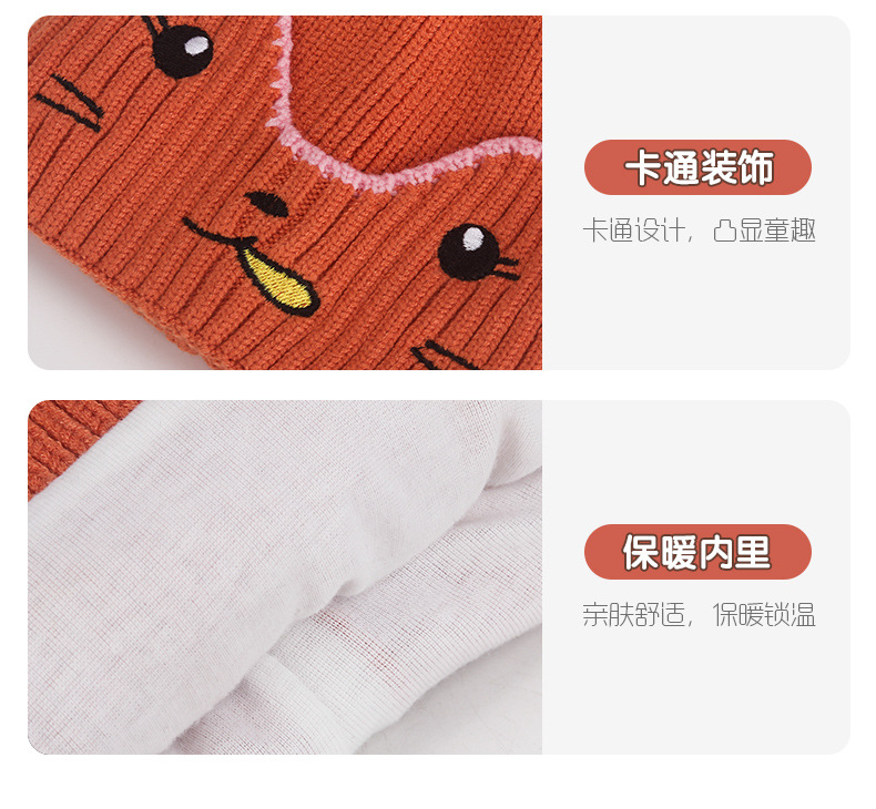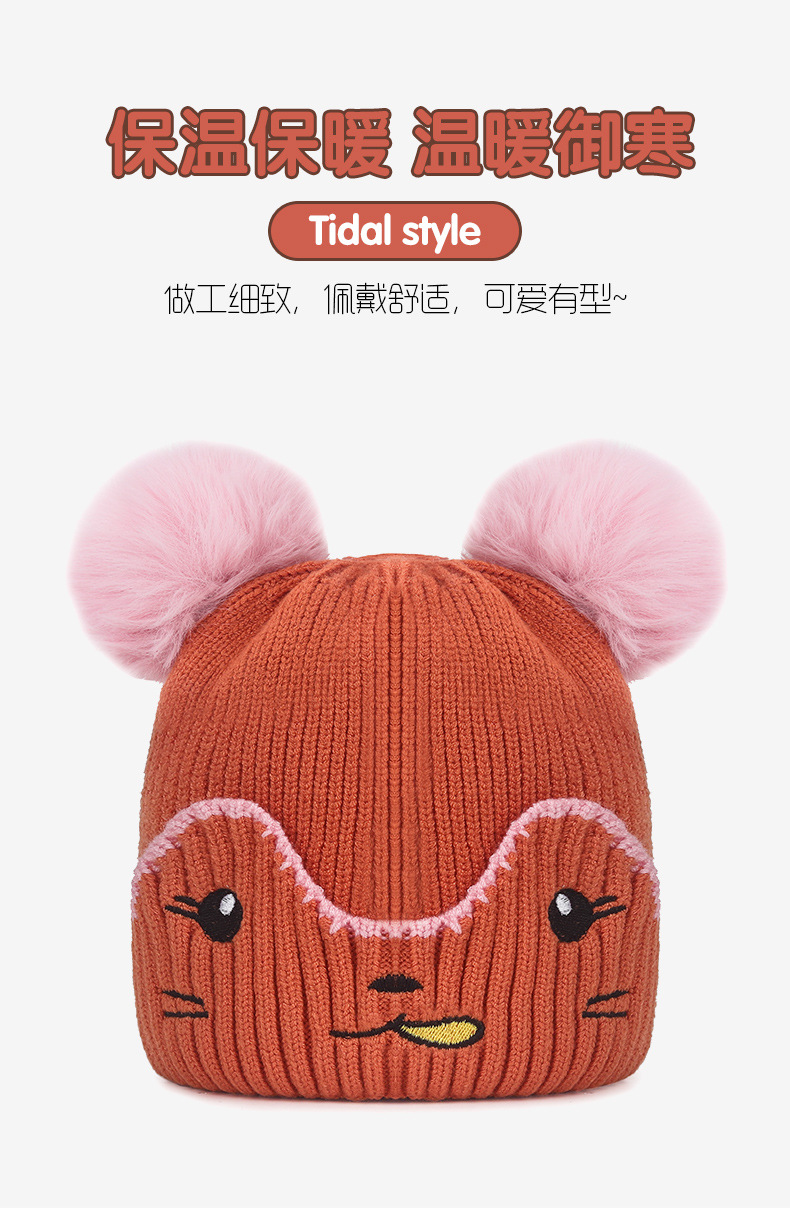 Infant and toddler hats, outdoor cartoon embroidered warm woolen hats for boys, Korean version of girls' woolen knitted hats with fleece for cold protection