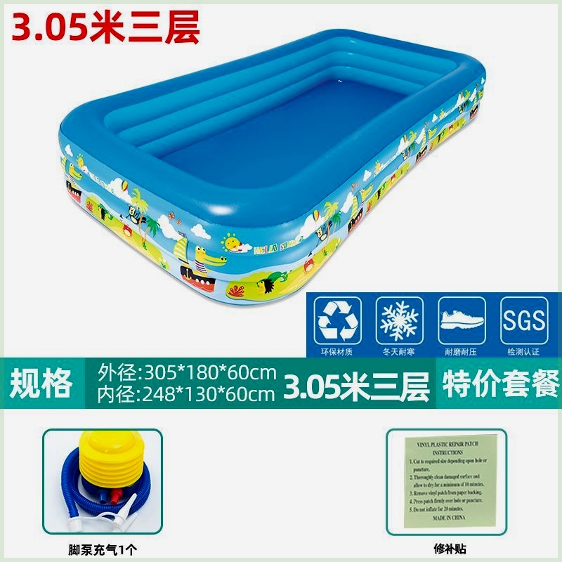 The foot pump package inflates slowly/Extra thick 3.05 meters three-layer - flat bottom