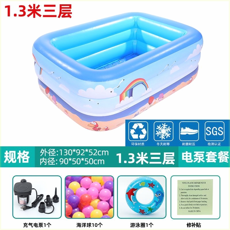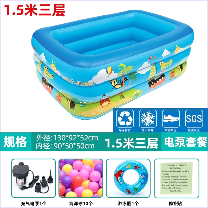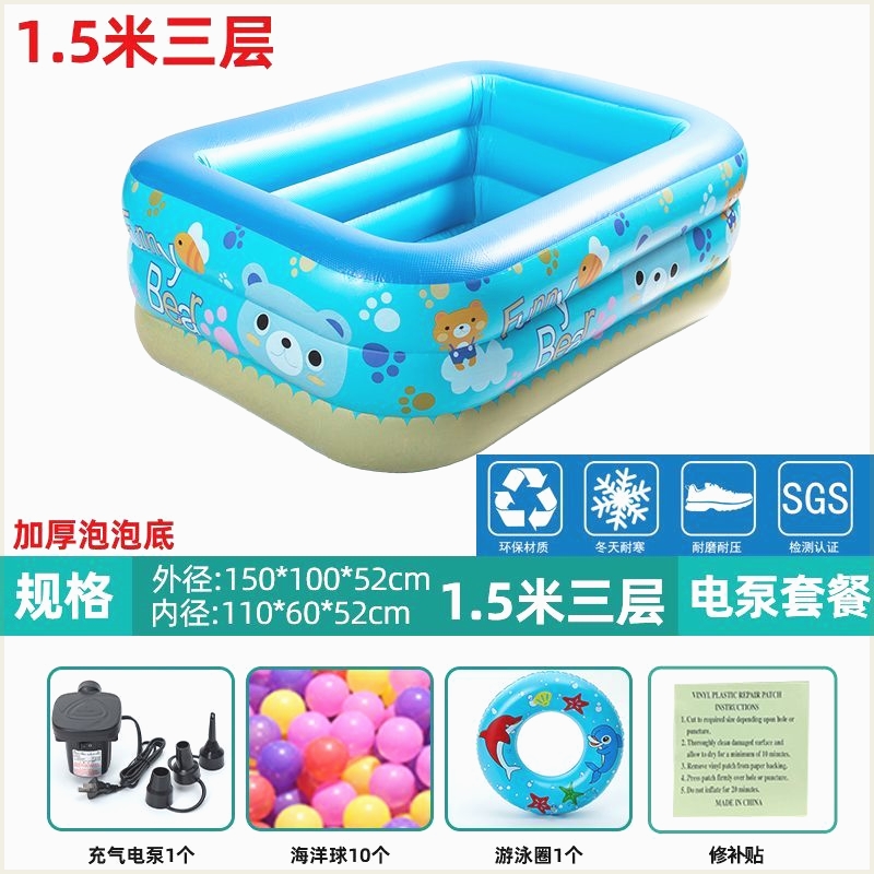 The electric pump package inflates quickly and is 1.5 meters thick with three layers - bubble bottom