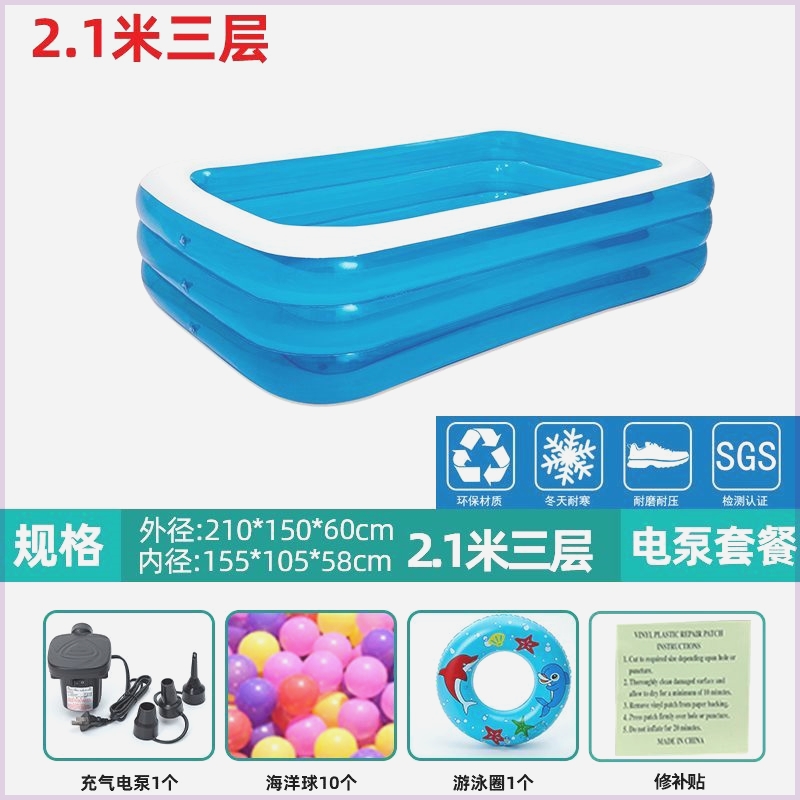 Electric pump package inflates quickly/about to sell out blue and white 2.1-meter three-layer - flat bottom
