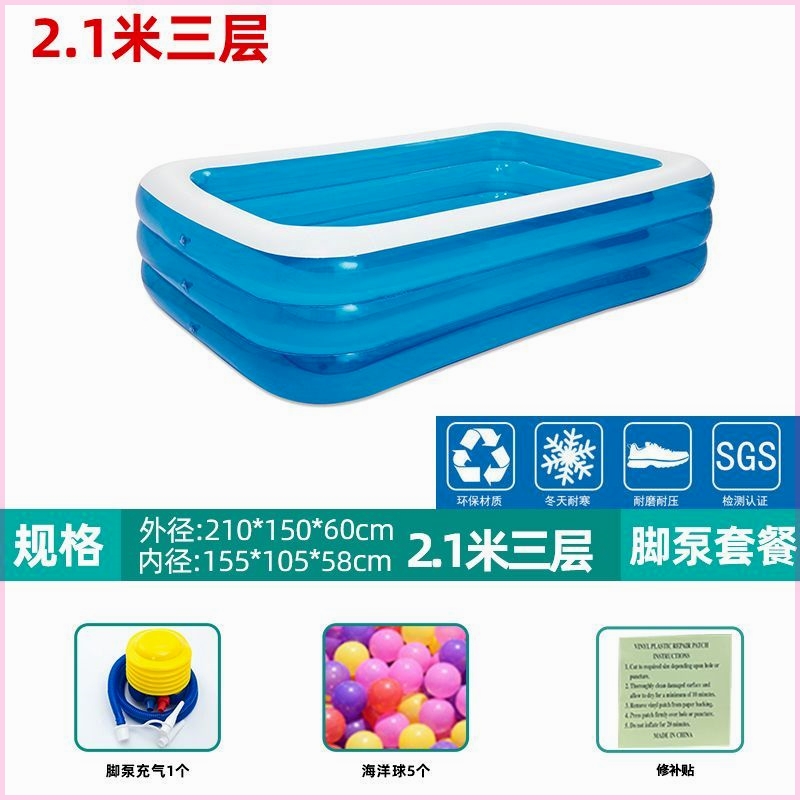 The foot pump package inflates slowly/is about to sell out. Blue and white 2.1-meter three-layer - flat bottom