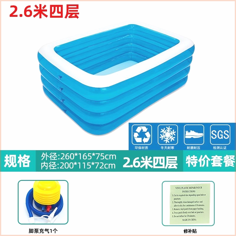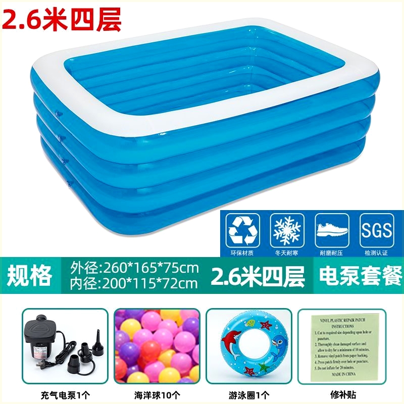 Electric pump package: Fast inflation/Extra thick blue and white 2.6-meter four-layer - flat bottom