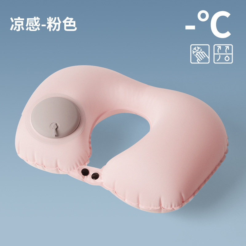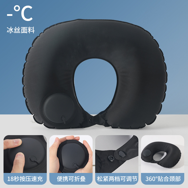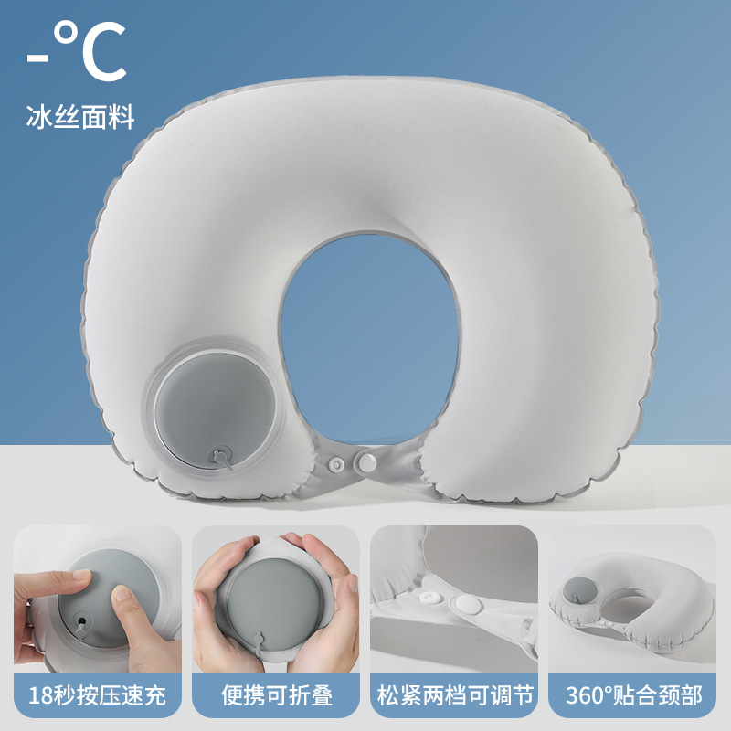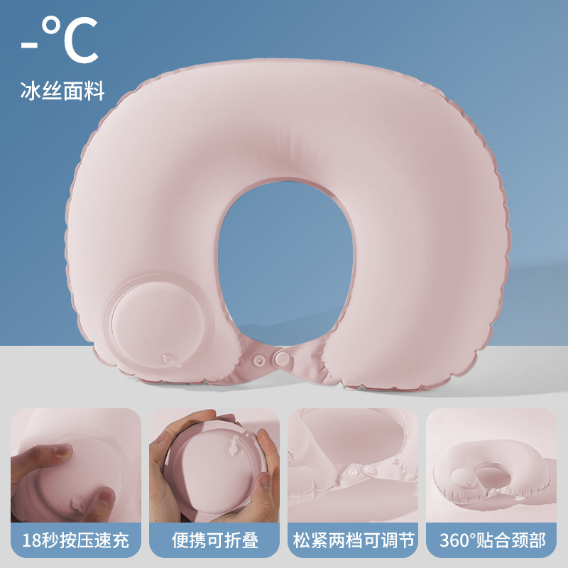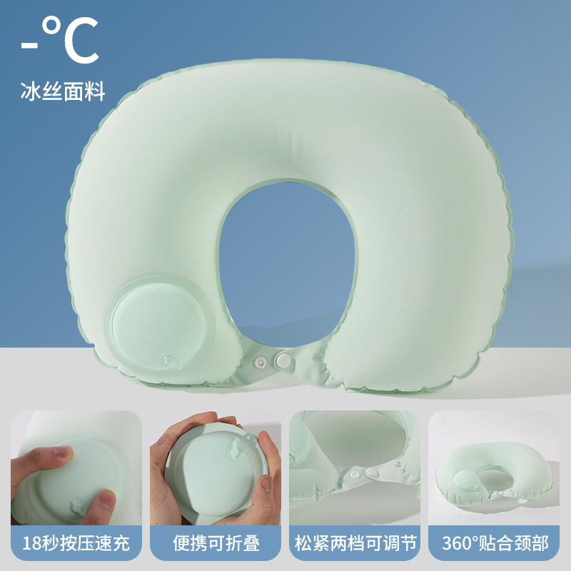 Inflatable U-shaped pillow, compression inflatable neck pillow, ice silk cool sensation, milk silk neck pillow, outdoor travel pillow, portable neck protection pillow