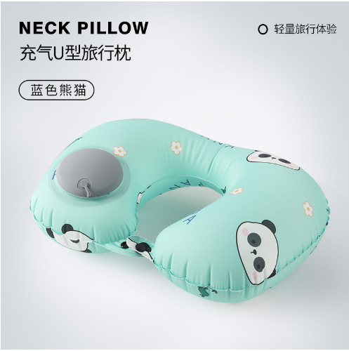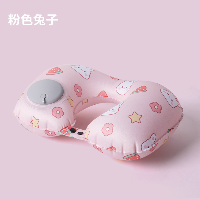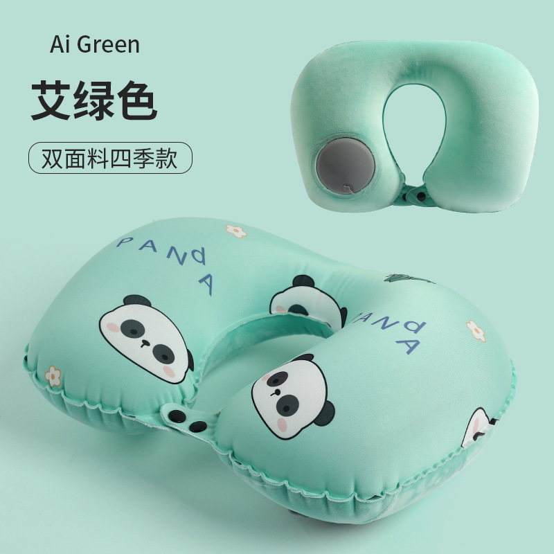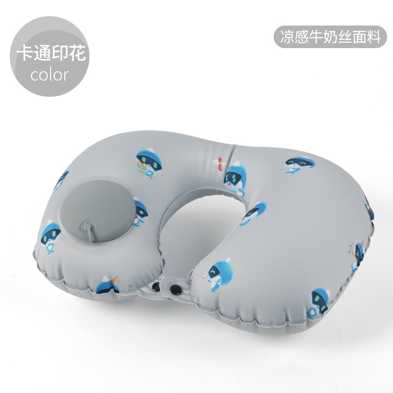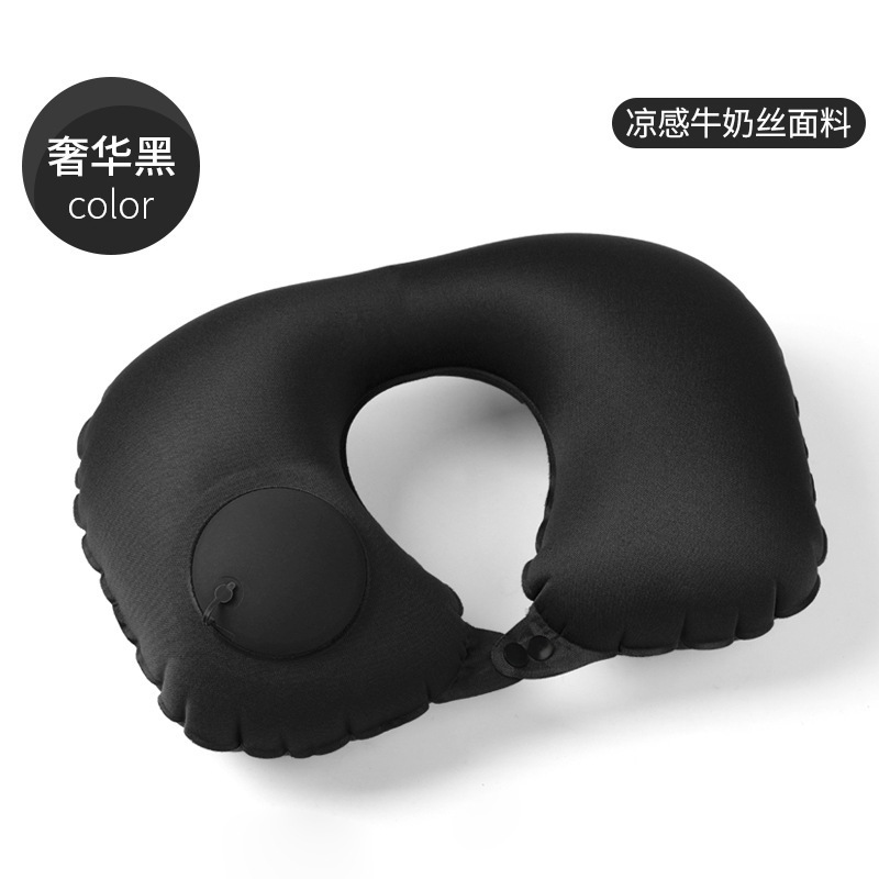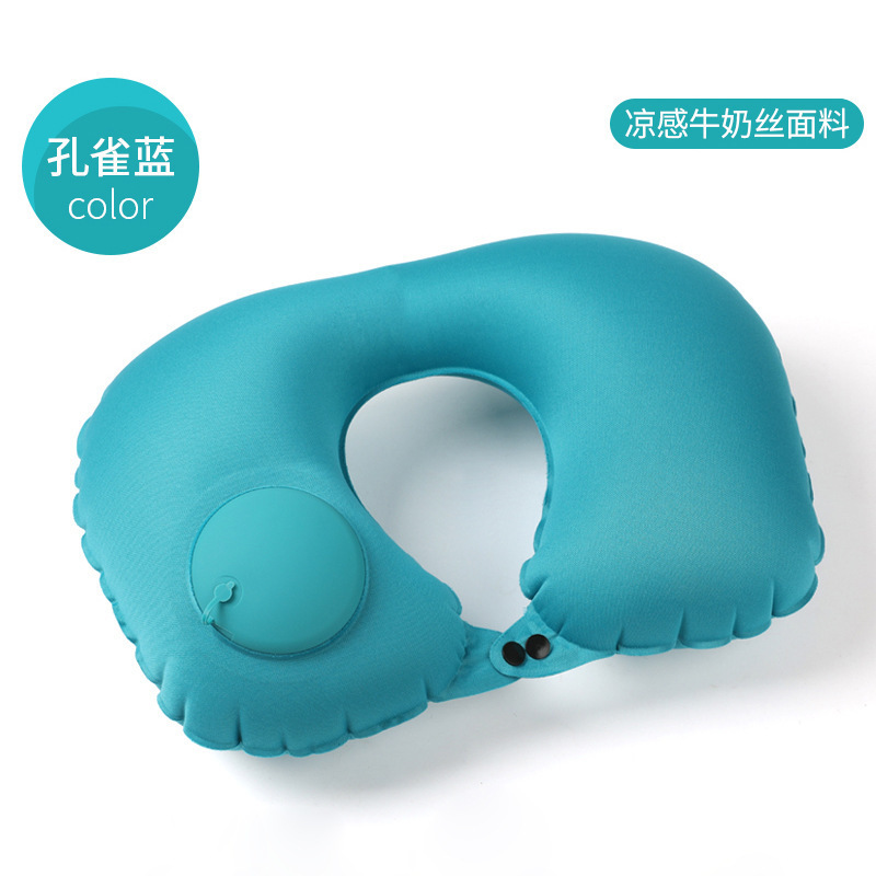 Inflatable U-shaped pillow, compression inflatable neck pillow, ice silk cool sensation, milk silk neck pillow, outdoor travel pillow, portable neck protection pillow