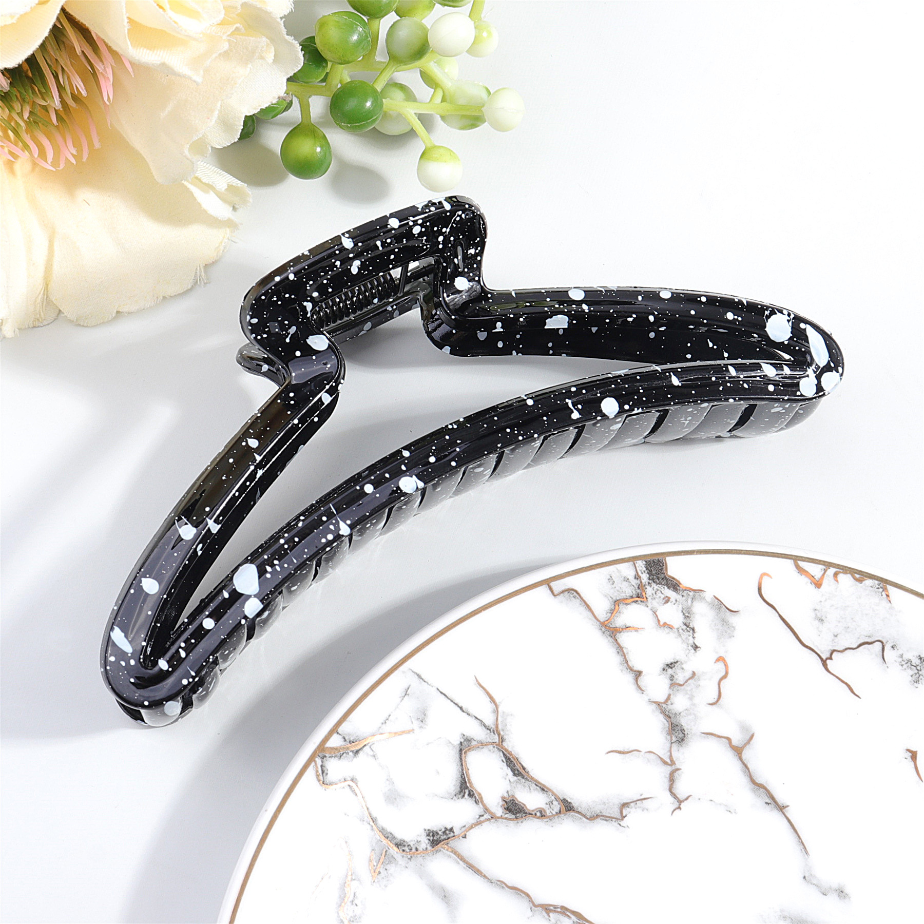 Inkjet black and white spotted large hair clips for women's commuting, light luxury and high-end style hair clips, shark clips, square hair accessories and headwear