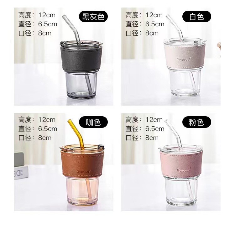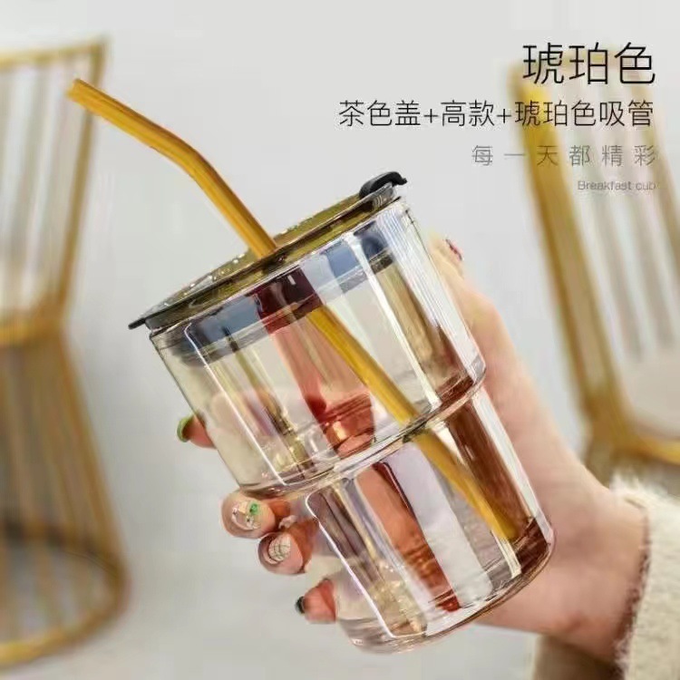 INS bamboo joint glass cup, double-drinking straw cup, high-temperature resistant office gift cup, beverage coffee cup