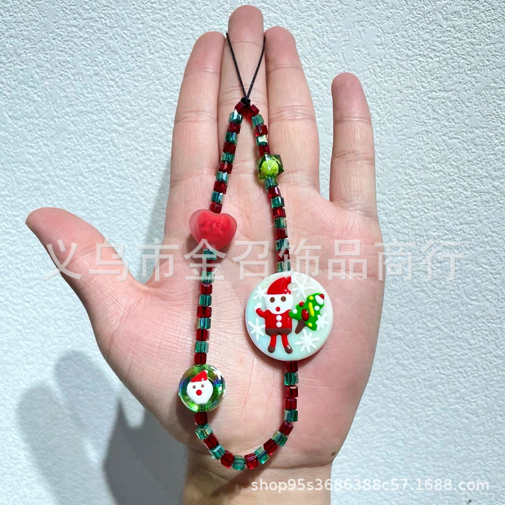 ins Christmas phone chain: Versatile beaded Christmas tree, Snow Man, Heart, green gingerbread Man, glass phone lanyard