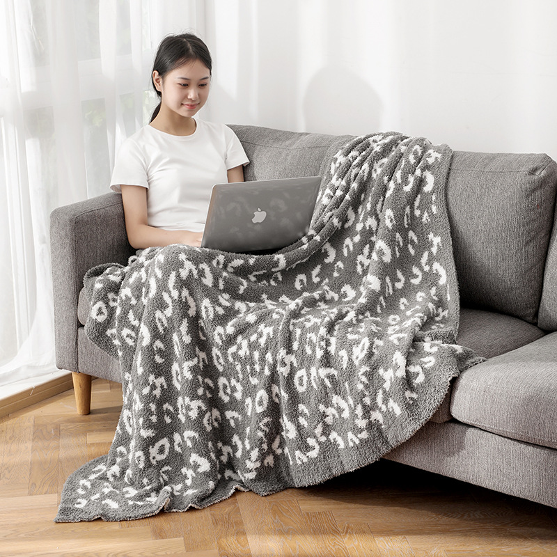 ins Double-layer leopard print light luxury half-fleece casual blanket, home Nordic shawl blanket sofa, nap blanket cart