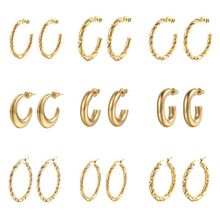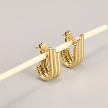 ins European and American wide curved stainless steel earrings, high-end titanium steel earrings, 18K gold light luxury style women's earrings