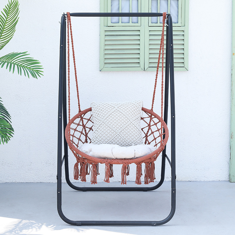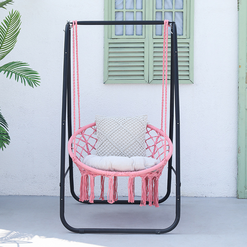 ins influencer tassel swing chair, home indoor cotton rope hanging basket, rattan chair, balcony European-style lazy cradle chair