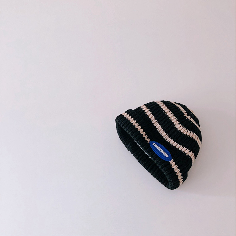 INS Japanese-style knitted striped melon rind hats for boys and girls, trendy and stylish rolled-up woolen hats for infants and toddlers