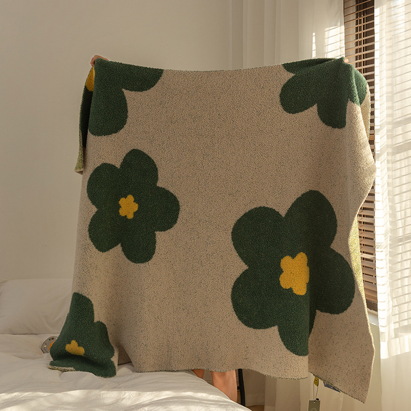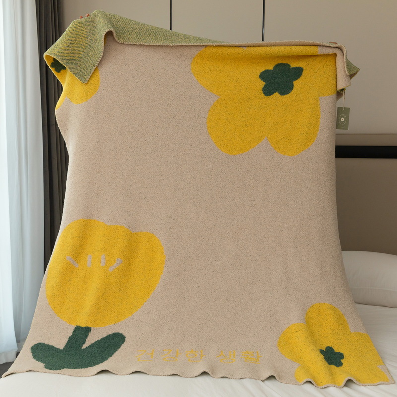 INS Korean-style designer Sunflower A-class half-pile knitted blanket sofa office nap blanket for autumn and winter