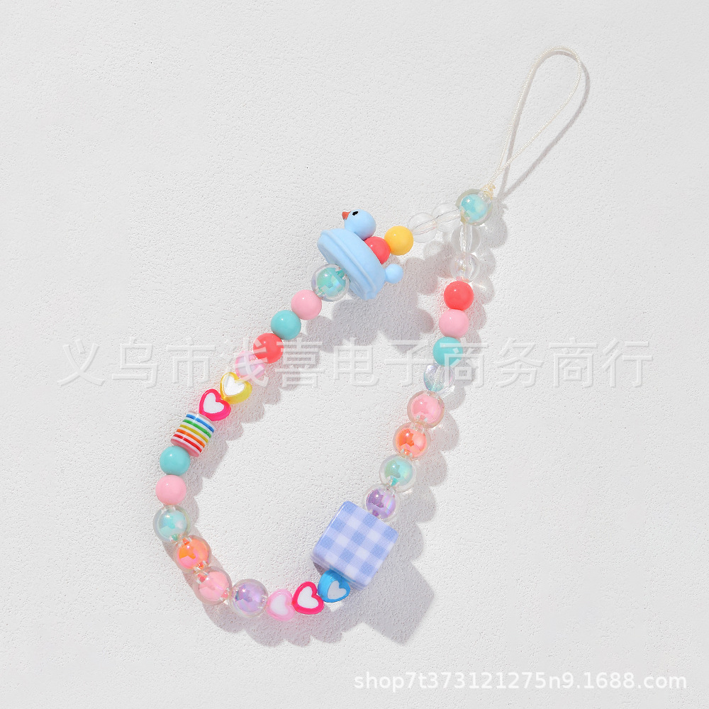 ins mobile phone chain swimming ring, yellow little duck, mobile phone lanyard, beaded diy mobile phone case, heart-shaped pendant chain, pendant rope